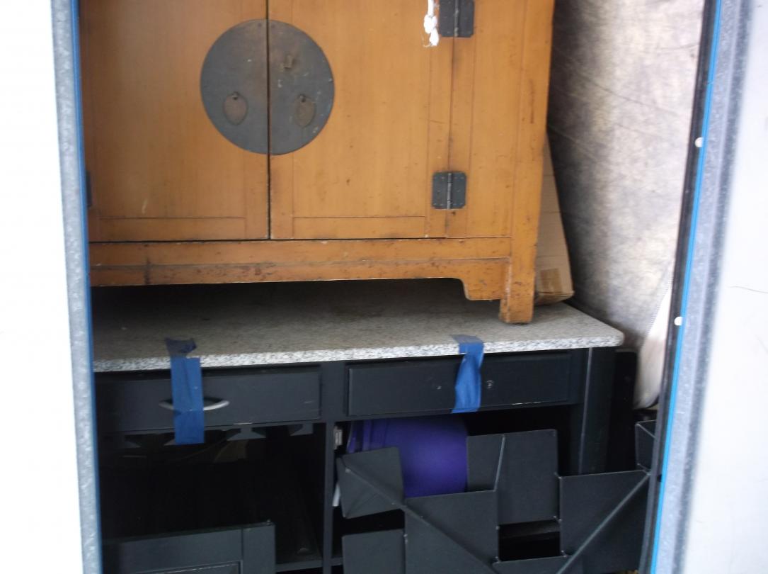 This unit appears to contain…Marble Topped Desk, Wash Stand, Bed, Wall Art, Boxes, Full Unit