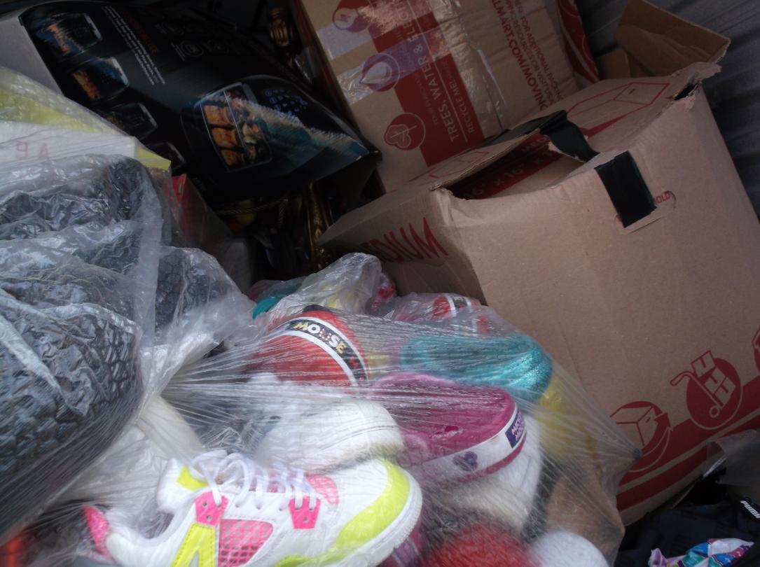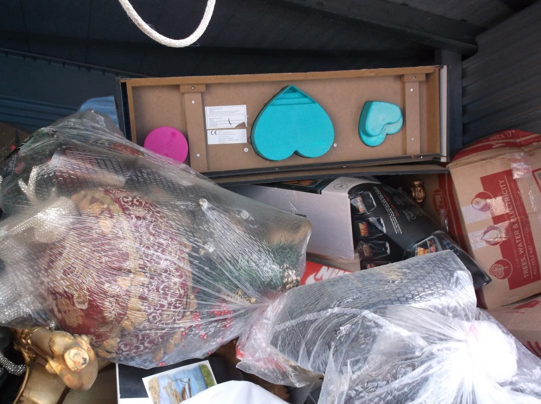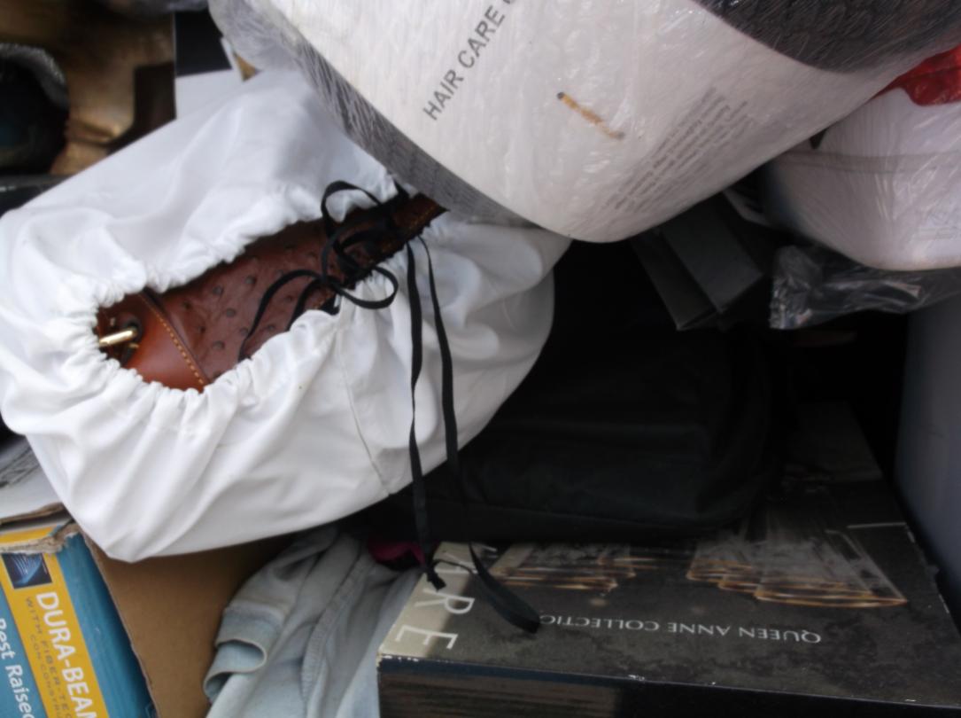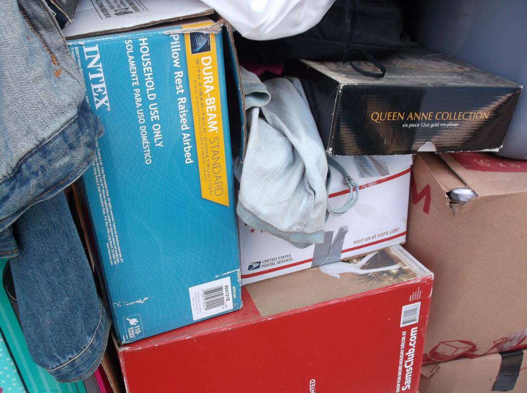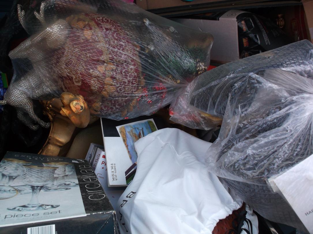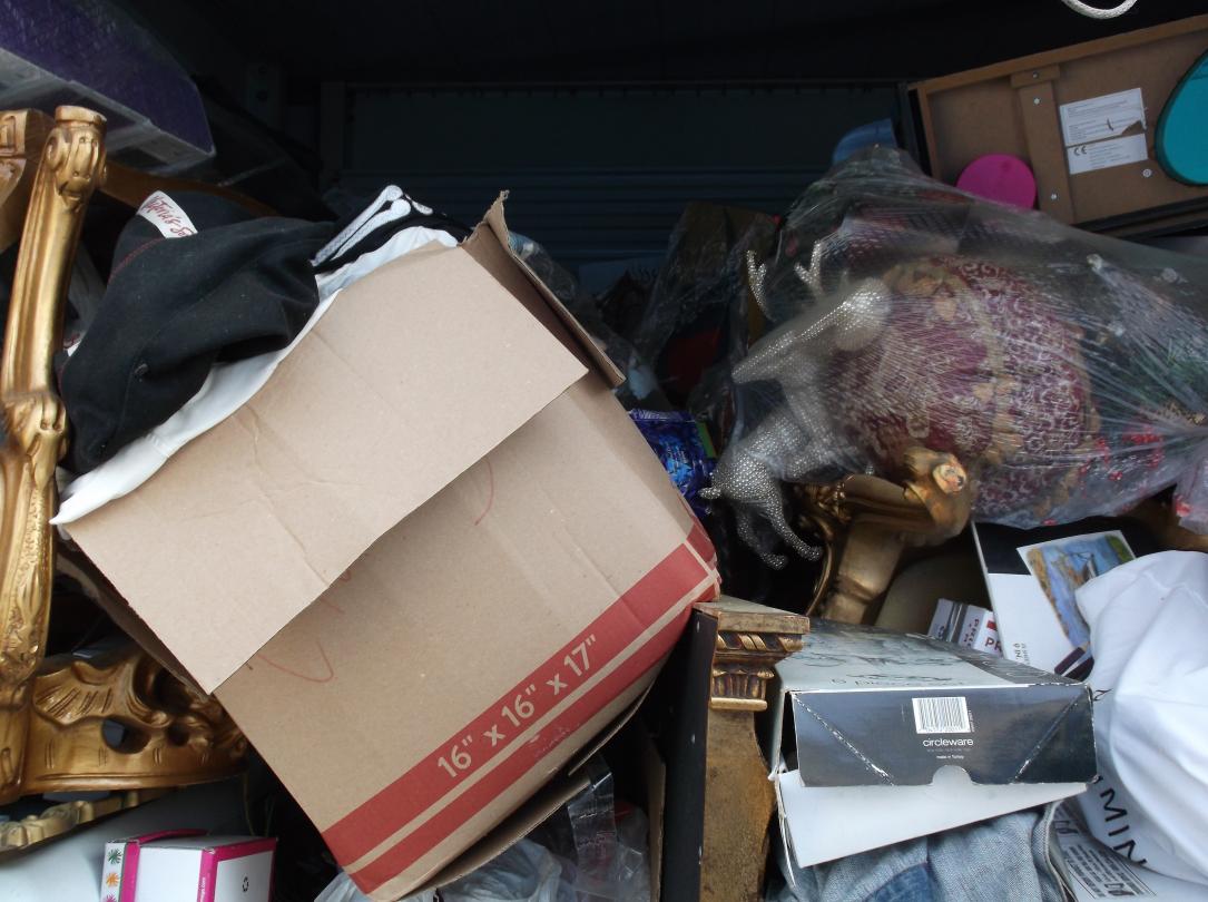 This unit appears to contain…Gold tables, Gold Headboard, Boxes, bags, Christmas items, Totes, Washer and Dryer