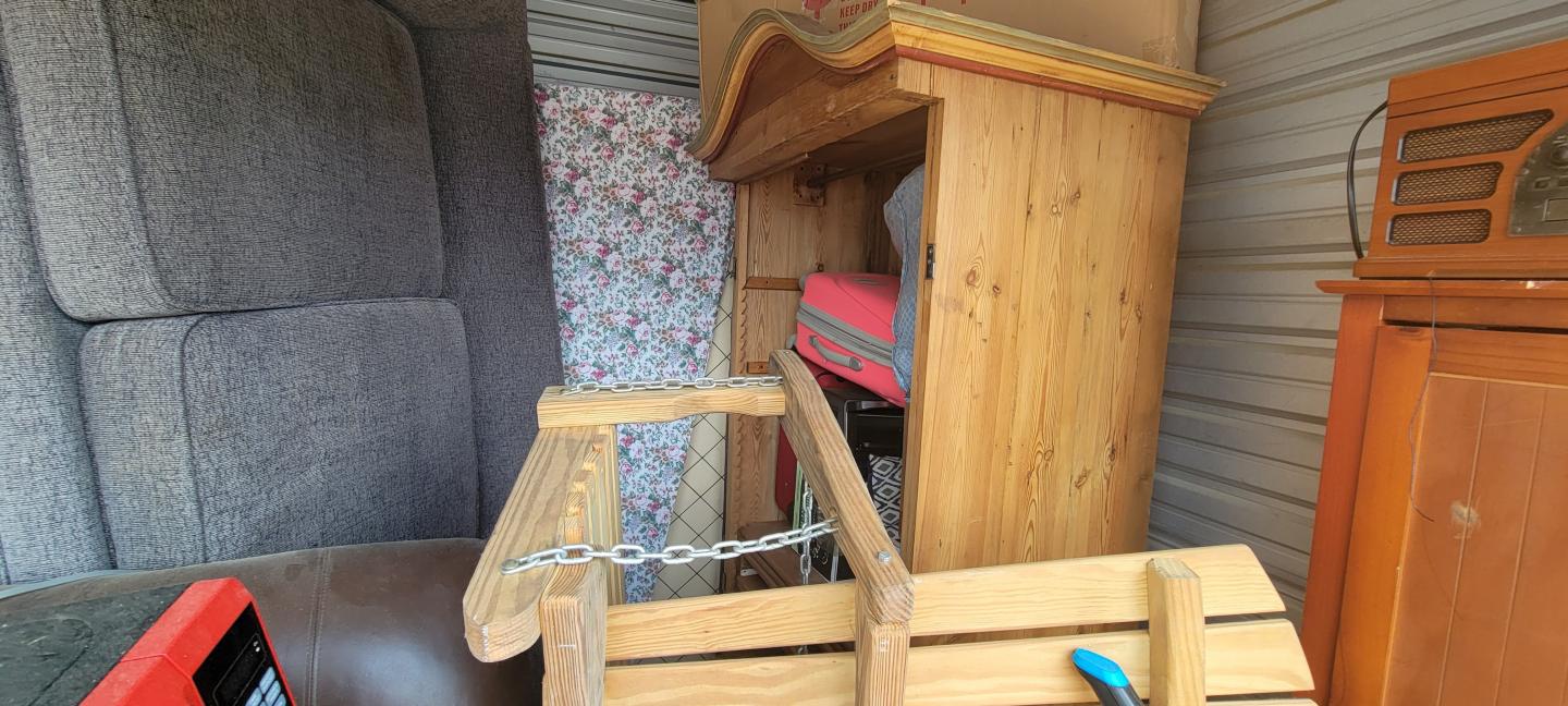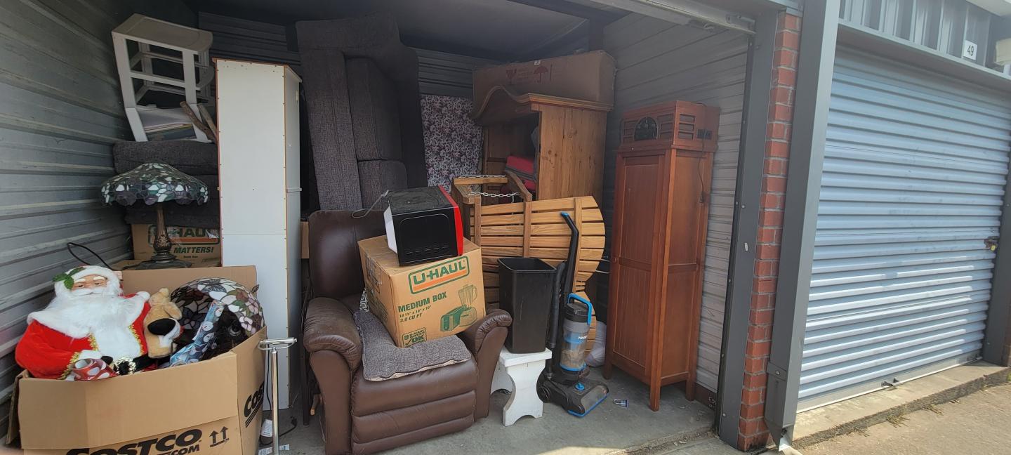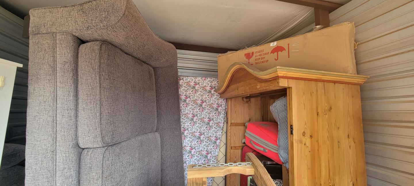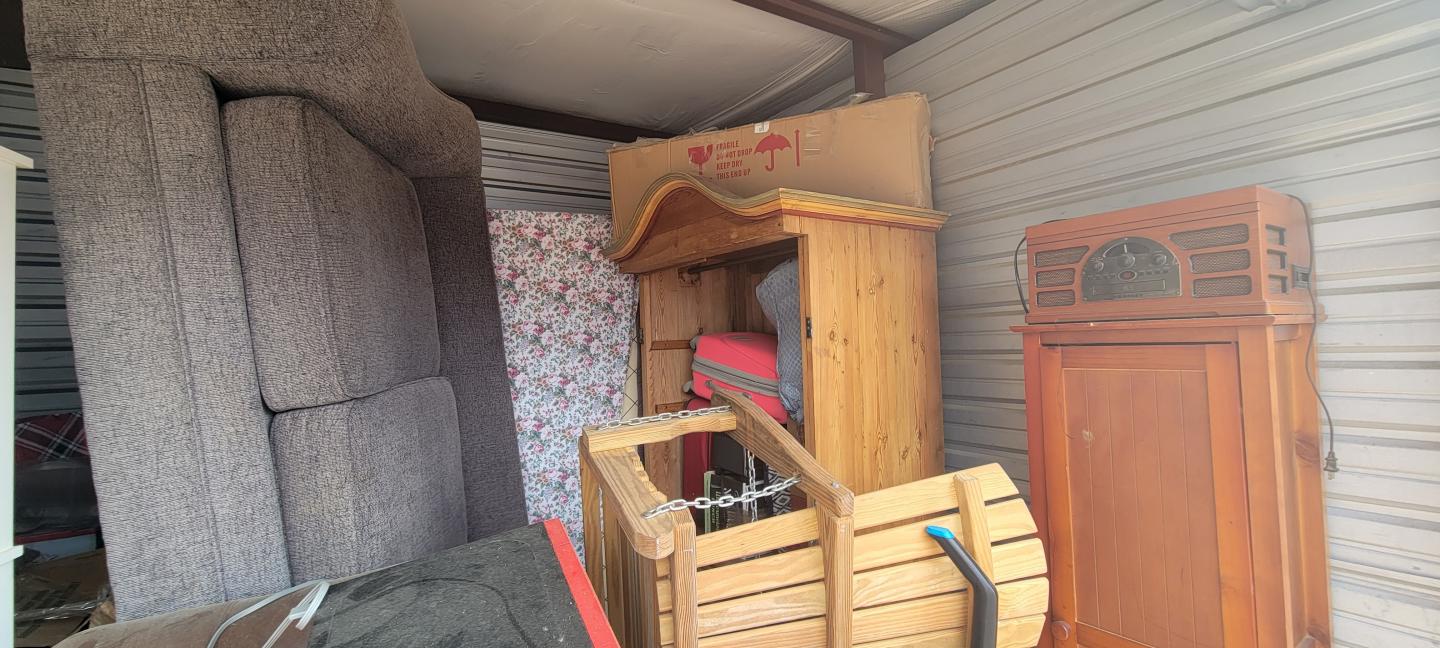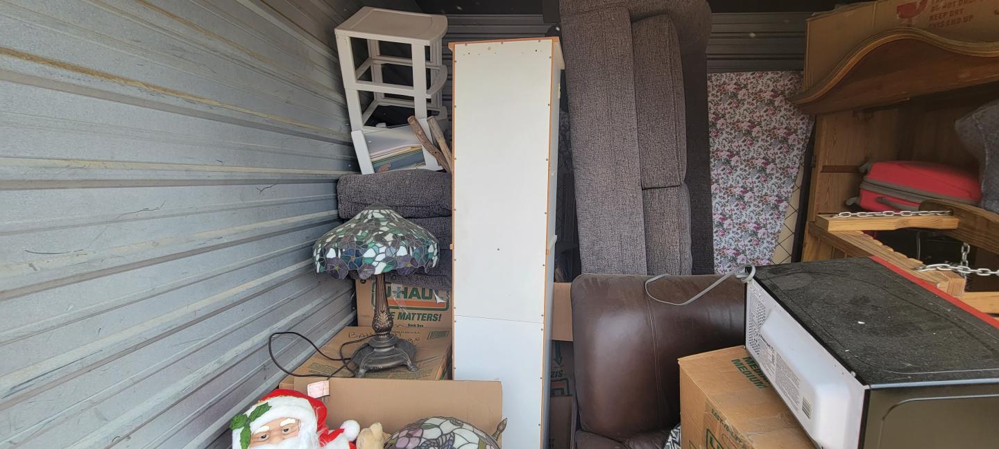 This unit appears to contain…Microwave,Couches,Mattresses,Lamps,Chairs,Plastic Bags,Misc. Boxes,Misc. Items,Suitcases