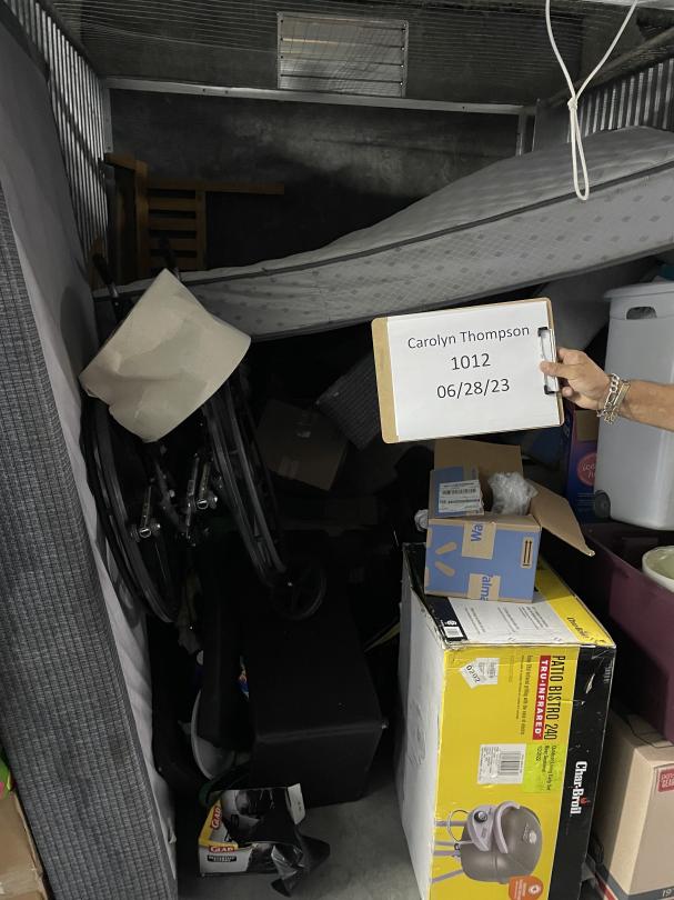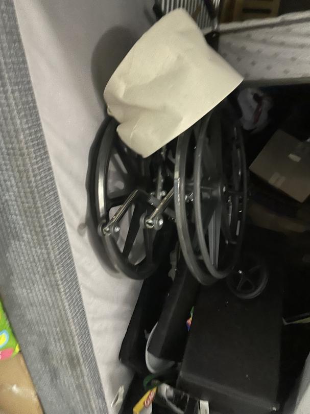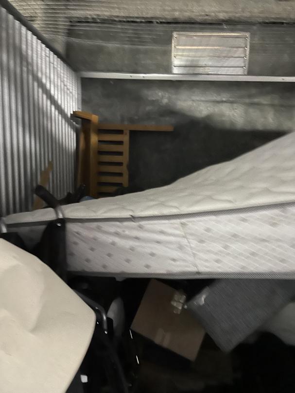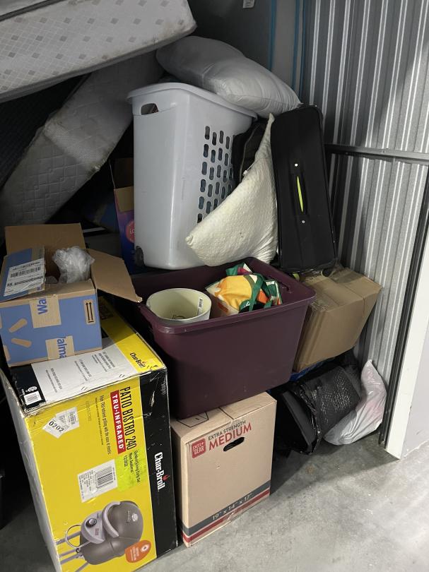 This unit appears to contain…Grill, wheel chair, Mattress, Head board, boxes, bags, totes