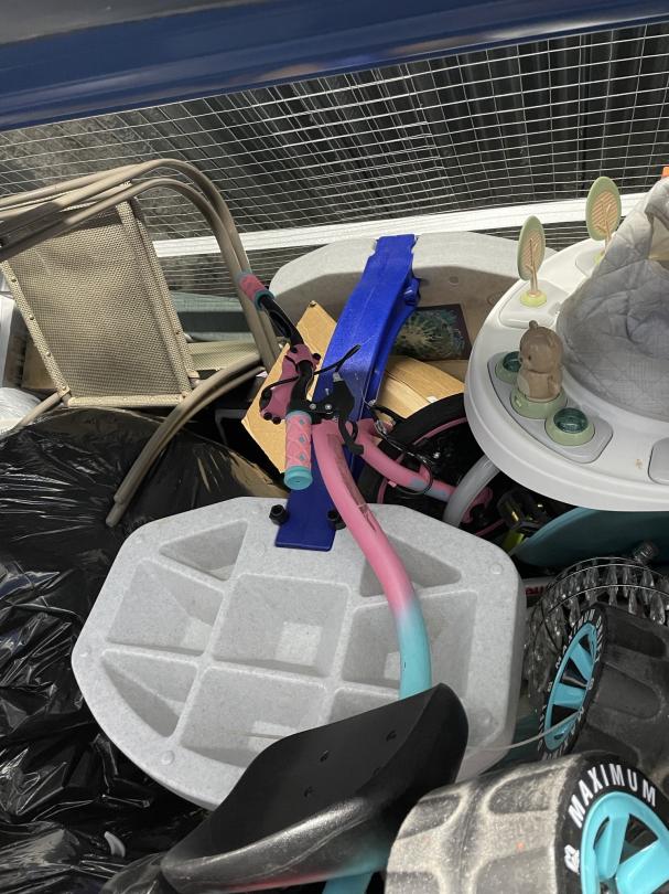 This unit appears to contain…Couch, bed, headboard, TV, kids toys, baby walker, Tables