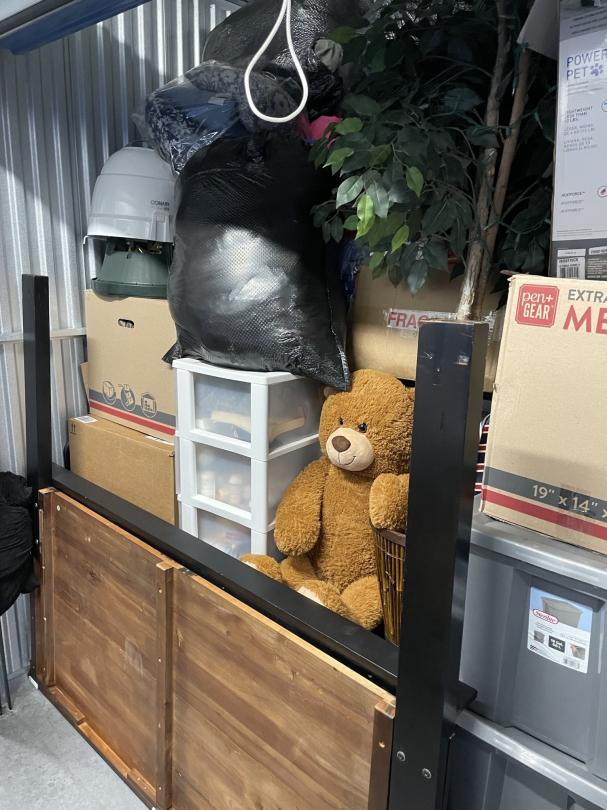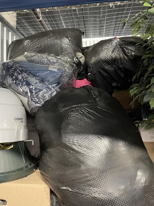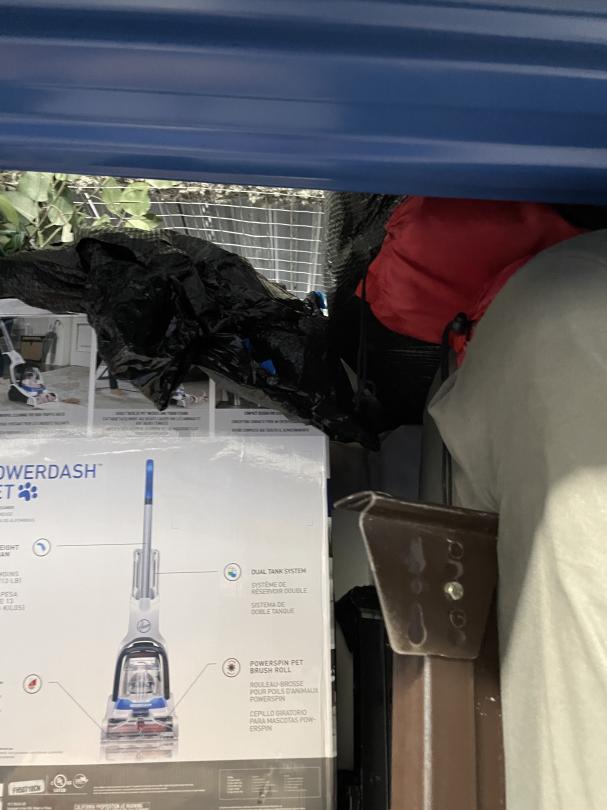 This unit appears to contain…Mattress, headboard, vacuum, caret cleaner, boxes, bags