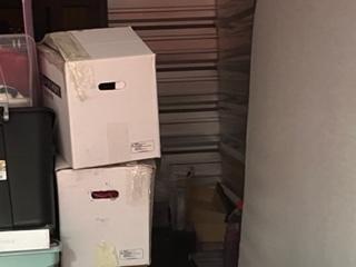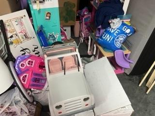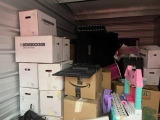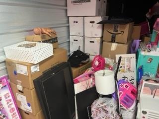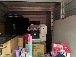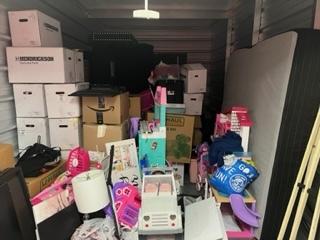 This unit appears to contain…Entertainment Center, Boxes, Totes, Toys, TV, Bed Frame, Couch, Box Springs, Lamp.
