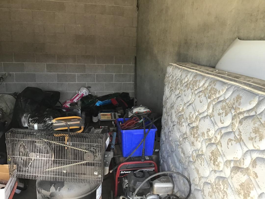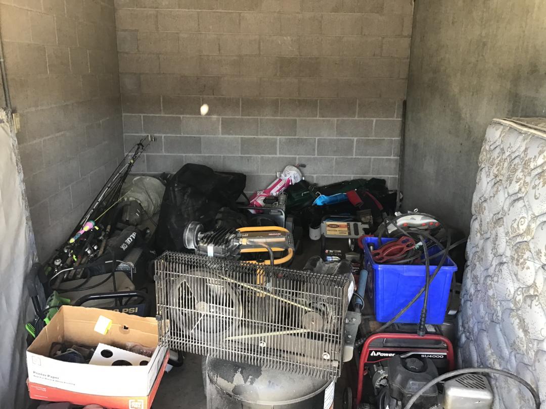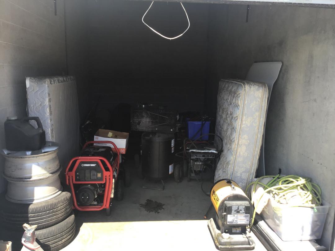 This unit appears to contain…Air compressor, generators, industrial heater, golf clubs, fishing poles, mattress and box springs, tires and rims power washer