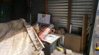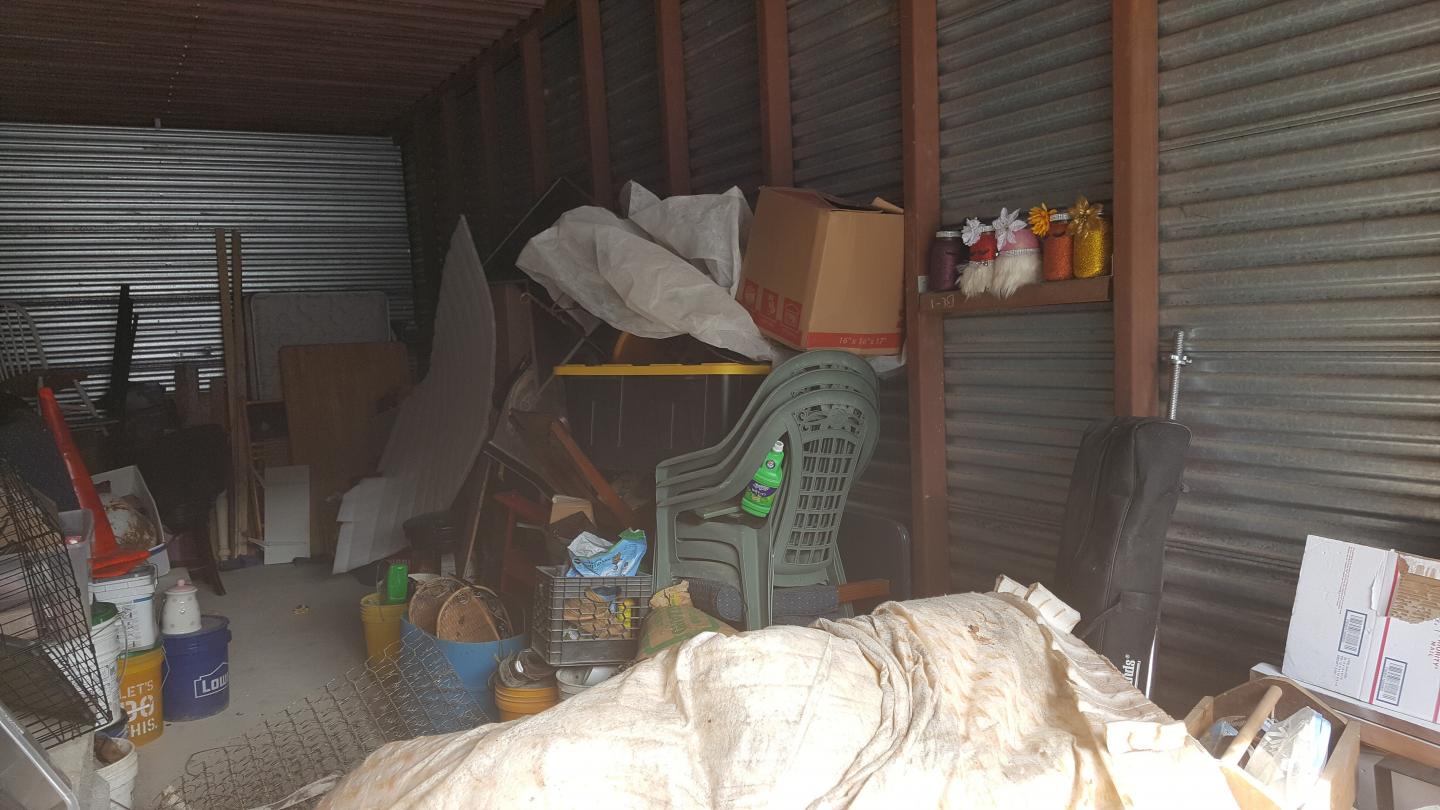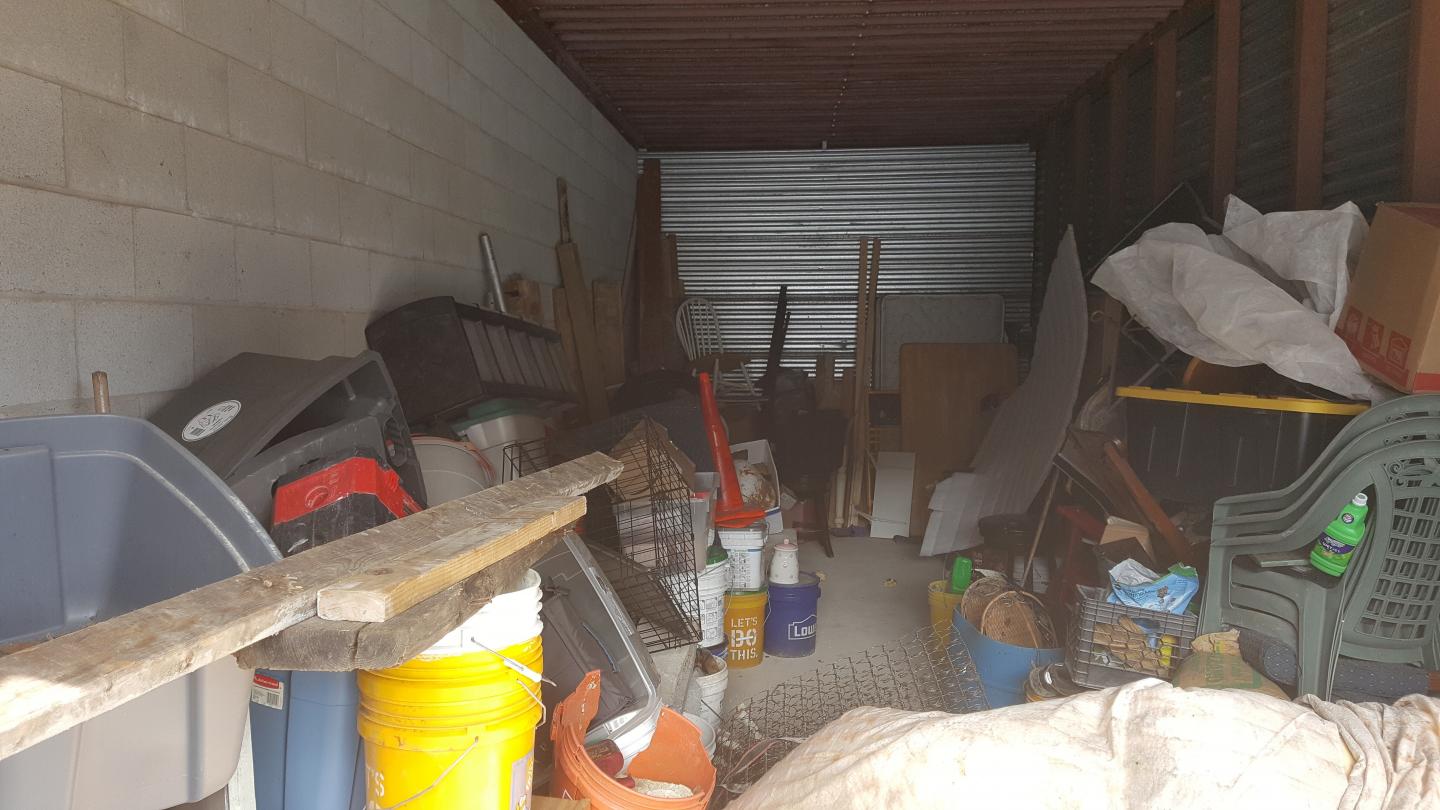 This unit appears to contain…This 10x30 drive up access unit appears to contain Art, Bags, Bedding, Boxes, Buckets, Canopy, Chairs, Exersise Equipment, Folding Table, Pet Cage, Scaffolding, Shelving, Sleds, Sporting Equipment, Table, Tool Box, Tools, Totes, Traffic Cone, Vavuum, Wood, Misc. Items