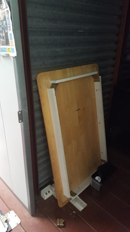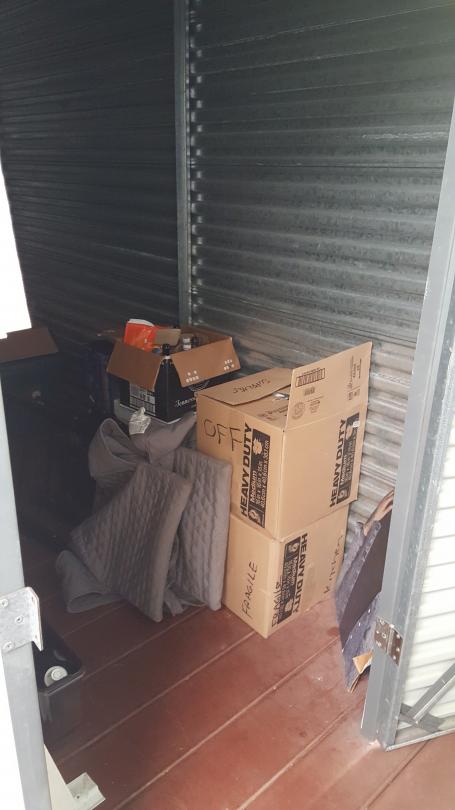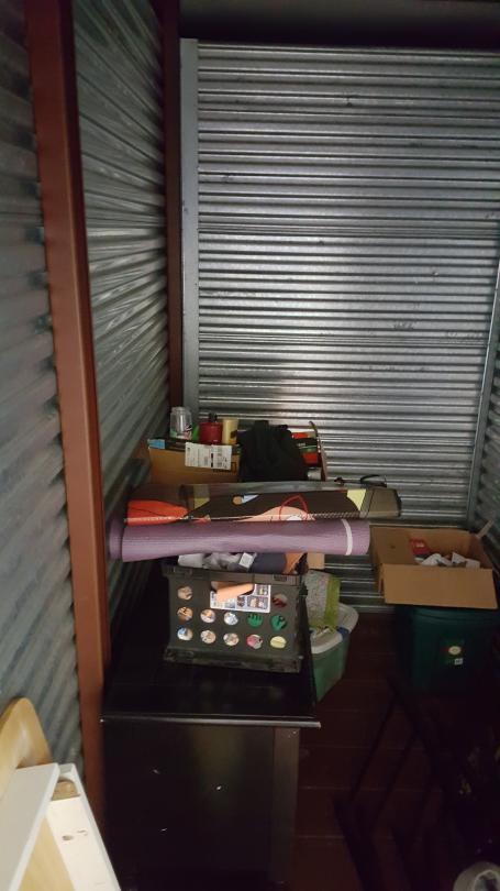 This unit appears to contain…This 5x10 unit on the 2nd floor appears to contain: Boxes, Folding Chairs, Furniture, Table, Totes, Misc. Items
