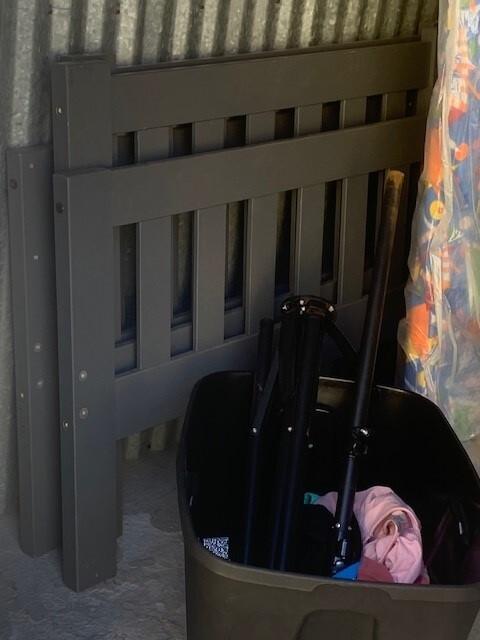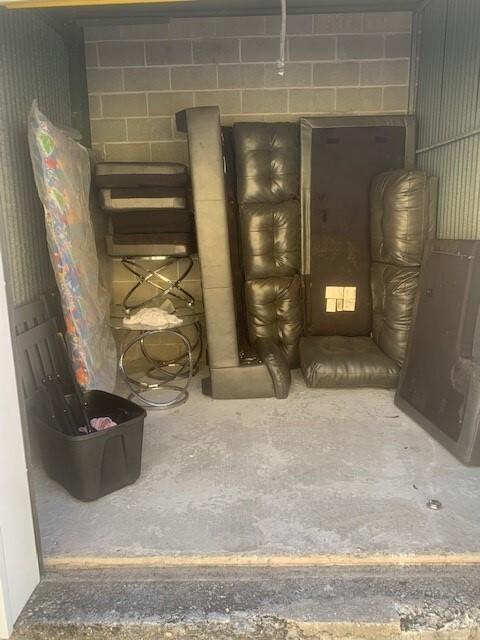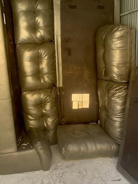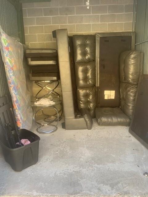 This unit appears to contain…TOTES, LOUNGER, CLOTHES, END TABLES, HEADBOARD & FOOT BOARD(SIDE RAILS), SOFA, MATTRESS