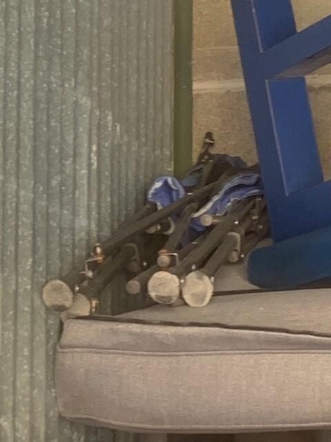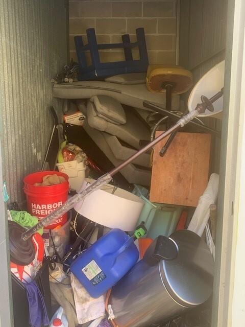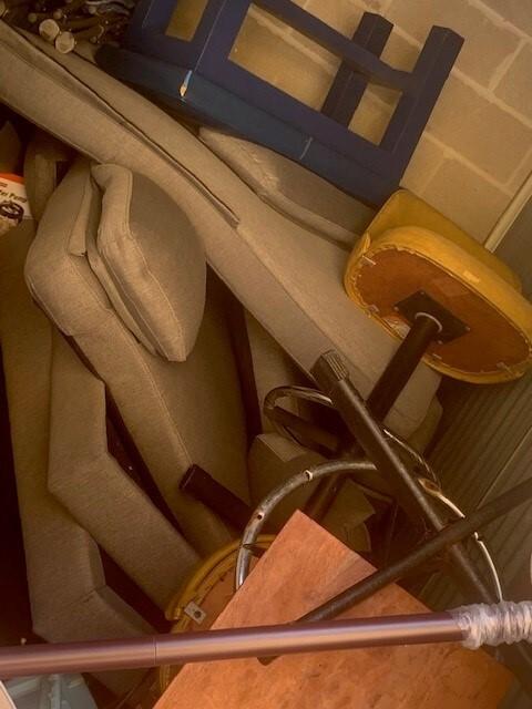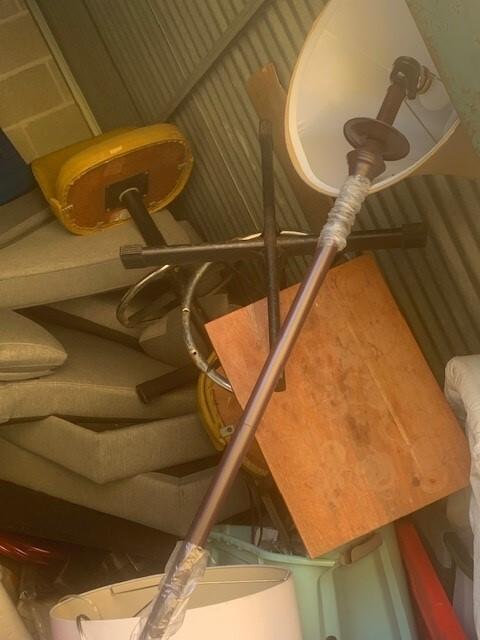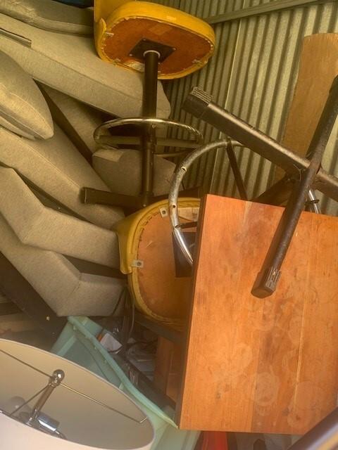 This unit appears to contain…BOXES, CHAIRS, LAMP, SOFA, TRASH CANS, GAS CAN, BENCH, FOLDING CHAIRS