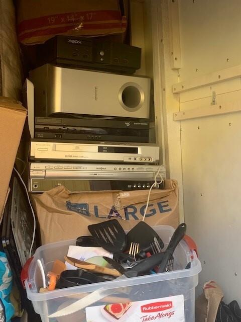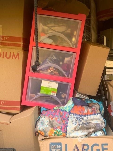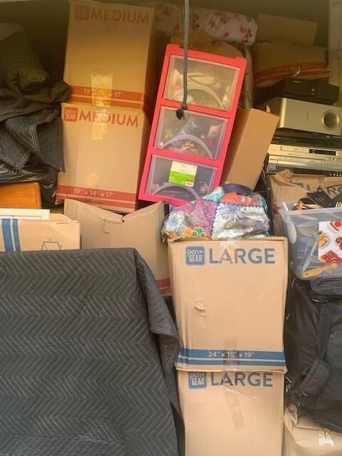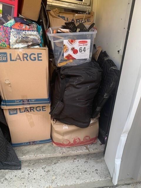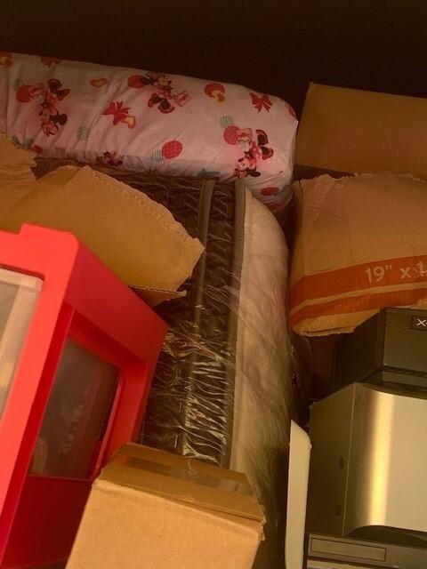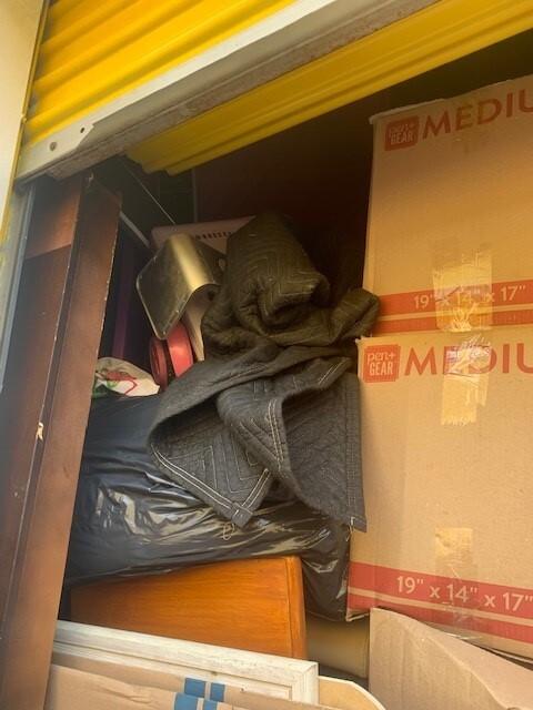 This unit appears to contain…BAGS, BOXES, MATTRESS & BOX SPRING, HOUSEHOLD GOODS, ELECTRONICS, STORAGE CONTAINERS, BLANKET, KIDS BED, SPEAKERS, X BOX SYSTEM