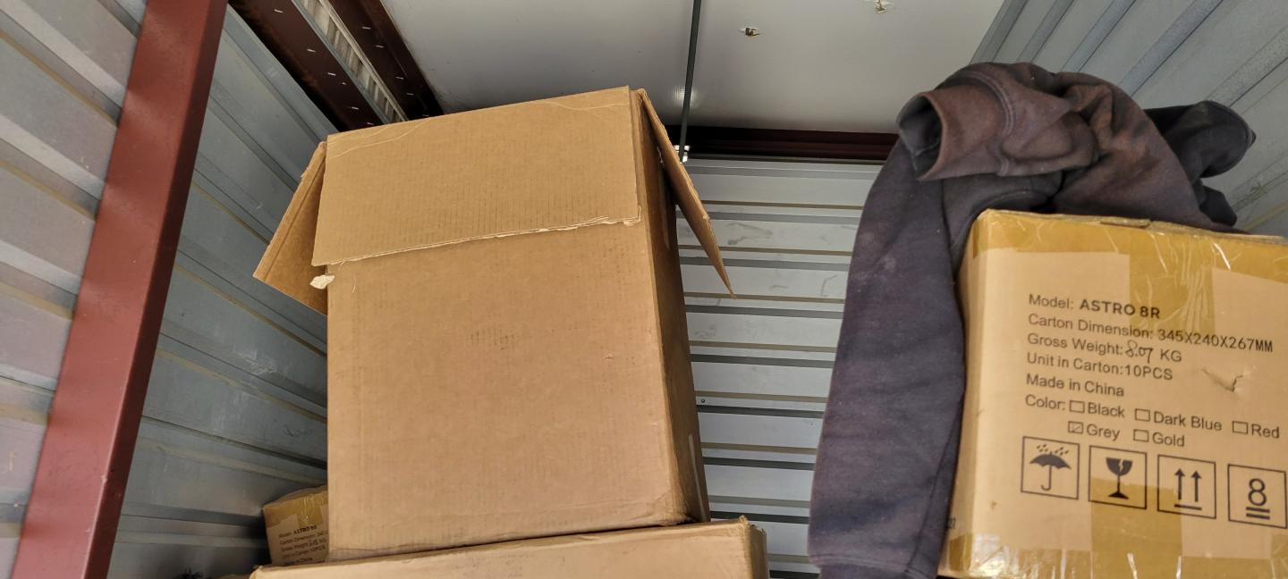 This unit appears to contain…chairs, misc. boxes, clothing, misc. items