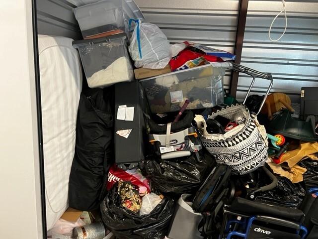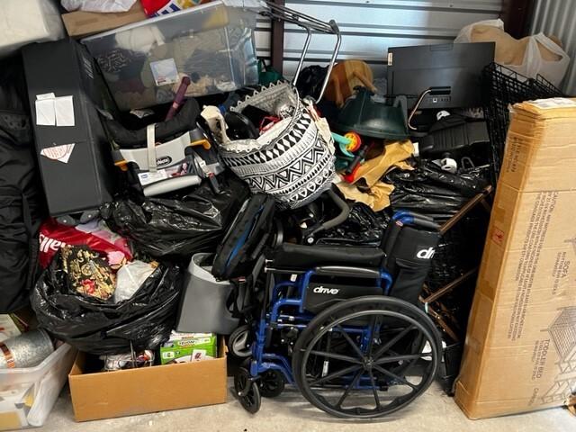 This unit appears to contain…Computer Equip.,Plastic Bags,Plastic Containers,Clothing,Misc. Items,Suitcases,Baby Furniture