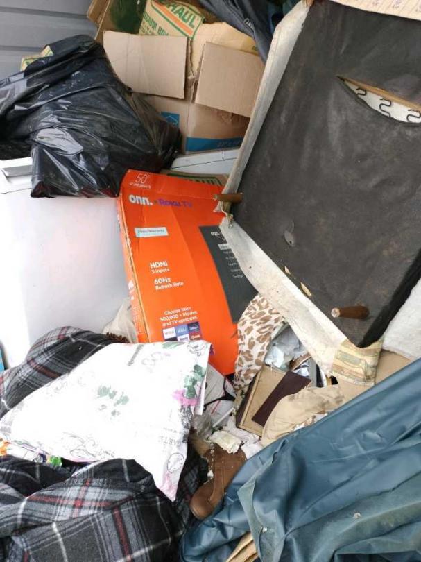 This unit appears to contain…Washing Machine,Dryer,Couches,Lamps,Ironing Board,Misc. Boxes,Vehicles not included in Sale