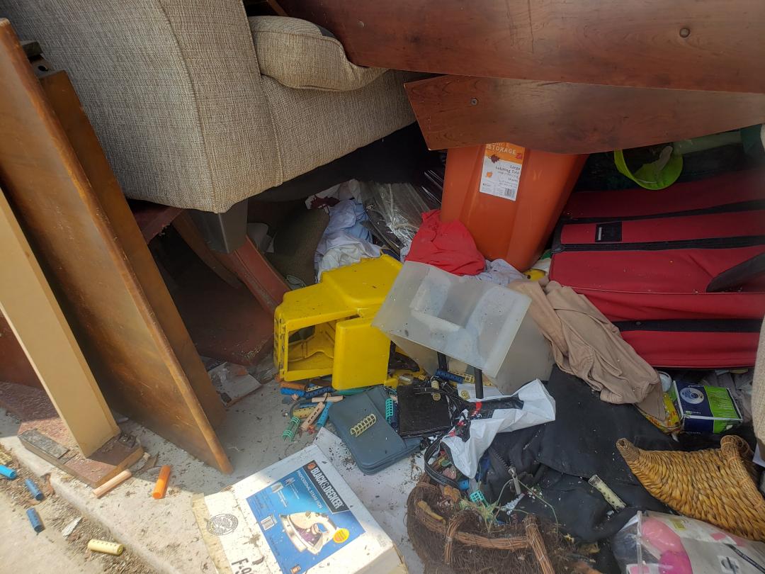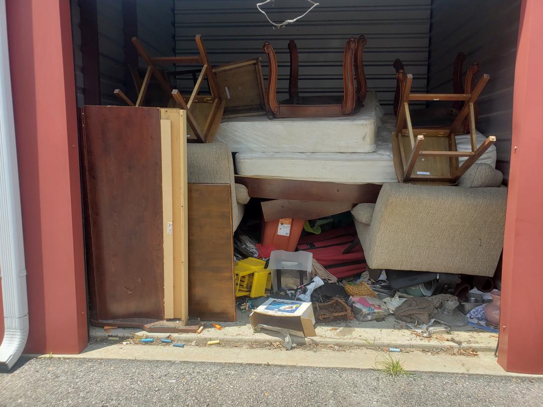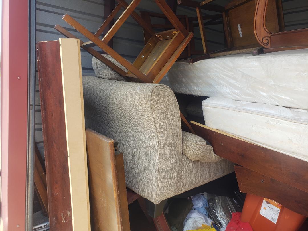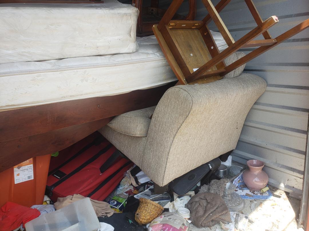 This unit appears to contain…Couches,Mattresses,Box Springs,Bed Frame,Chairs,Tables,Plastic Bags,Suitcases