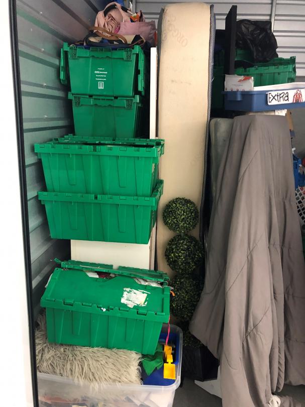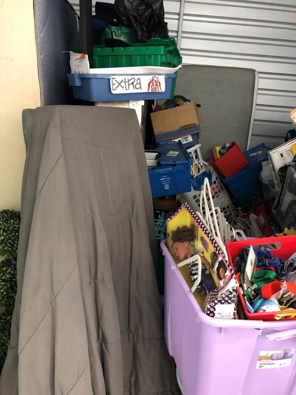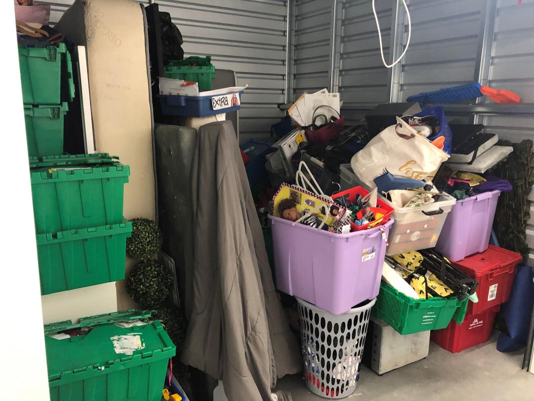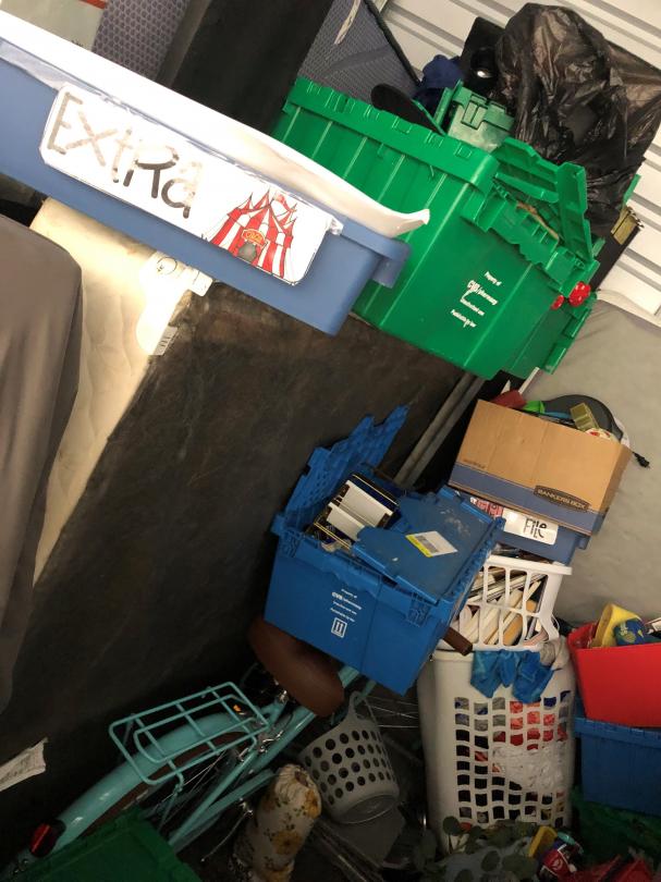 This unit appears to contain…bike, clothes, toys an misc. home items