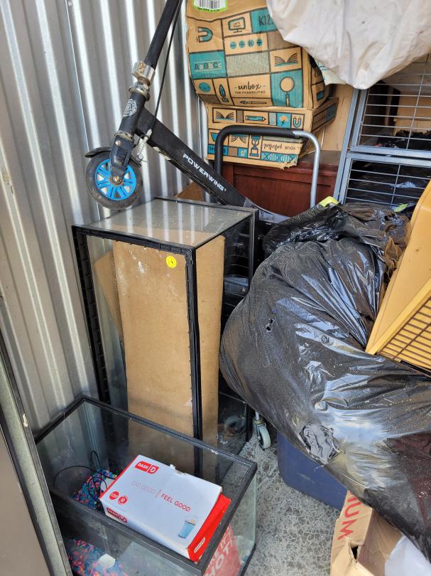This unit appears to contain…Aquarium, animal cage, household items, printer, furniture