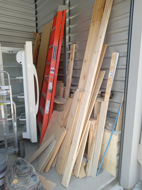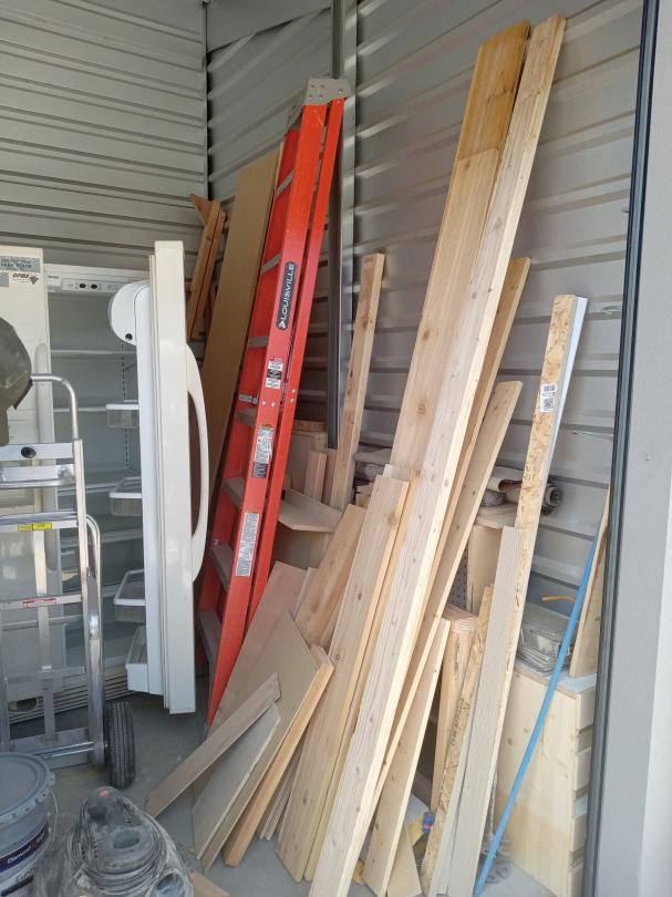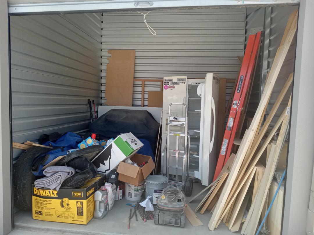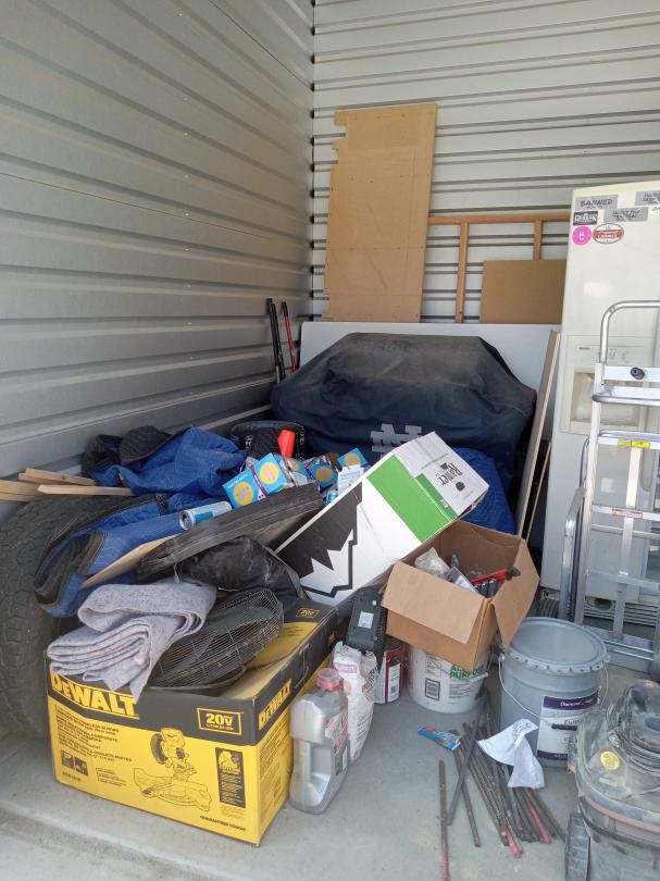 This unit appears to contain…Chair, Fan, Grill, Boxes, Refrigerator, Tools, Vacuum, Spyder Bar/Work Stool, Dollie, Lumber