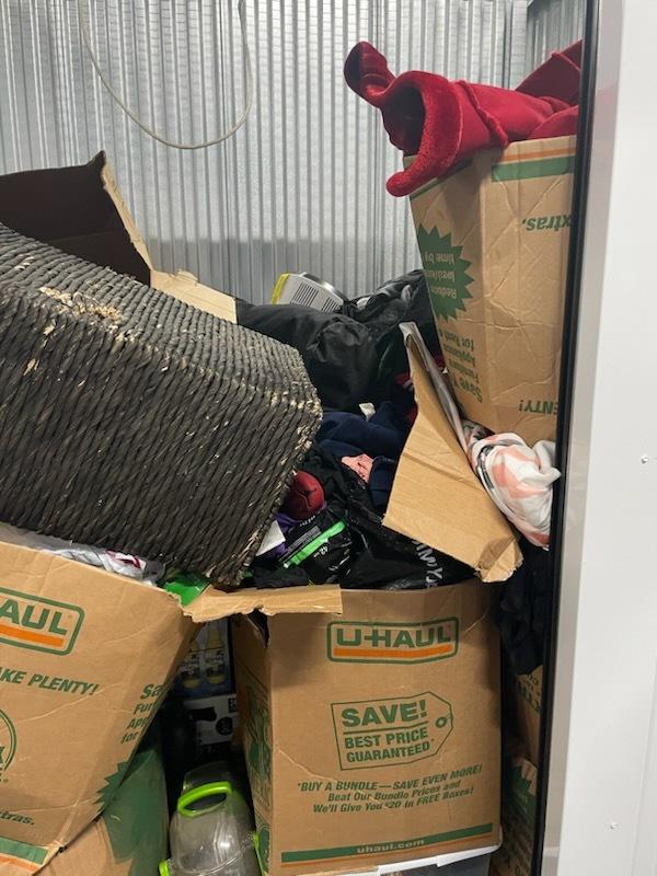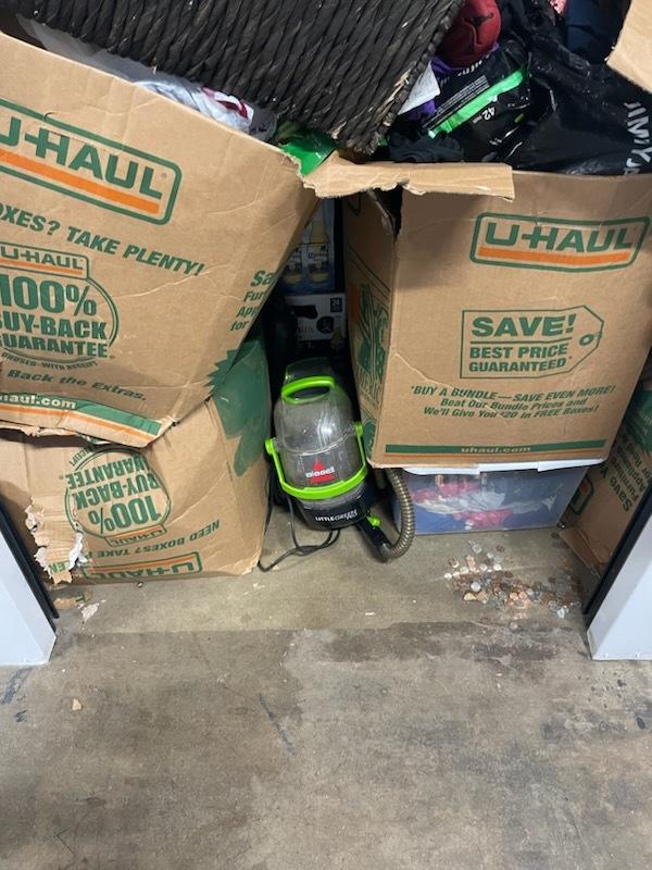 This unit appears to contain…boxes, totes, upholstery cleaner