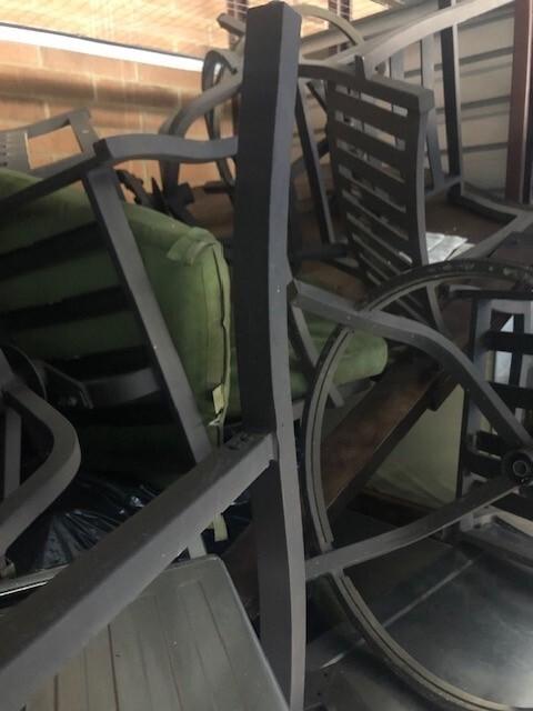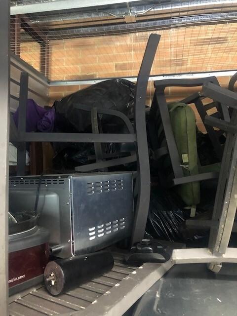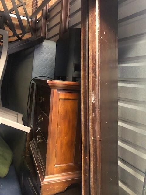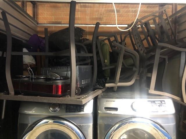 This unit appears to contain…Appears to contain: Washer/Dryer; Microwave; Mattress; Adjustable Bed Frame; Dresser; Lamps; Patio Furniture; Misc. Plastic Bags; Chairs; Storage Ottoman; Misc. Decor; Bose Speaker