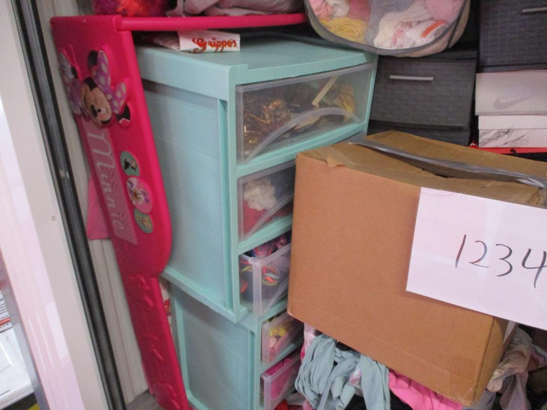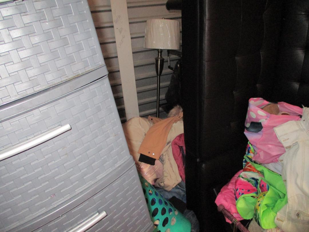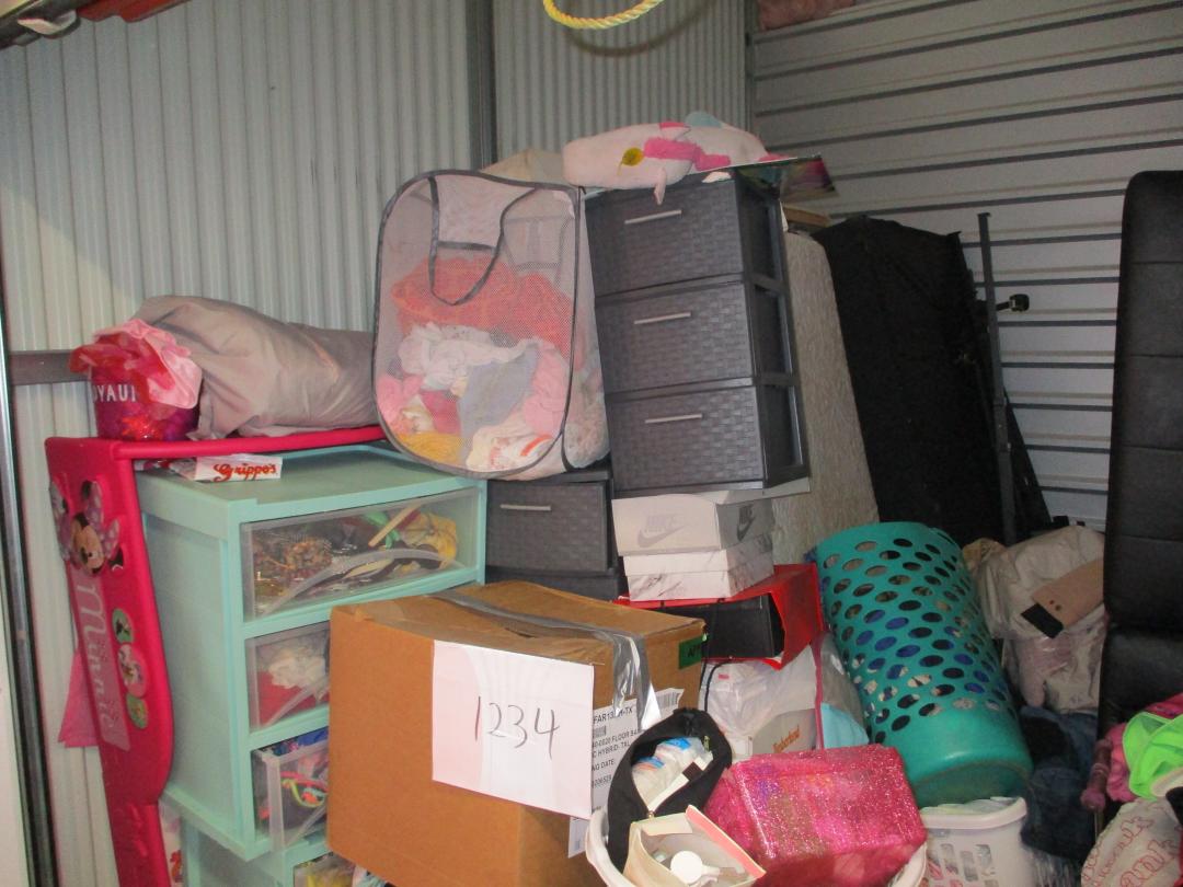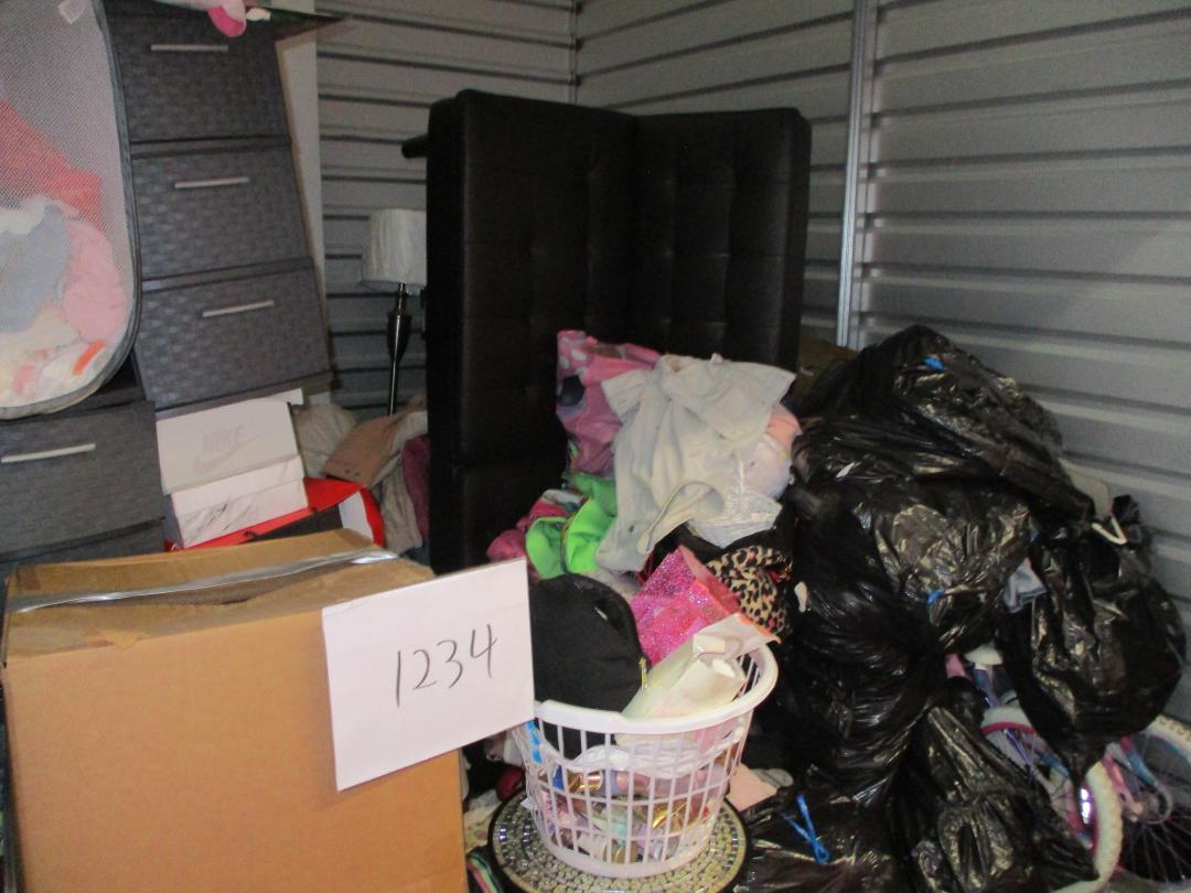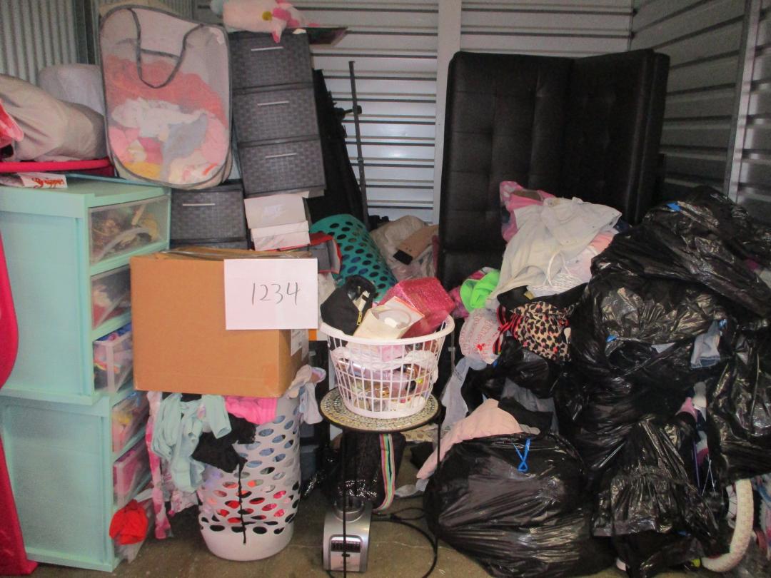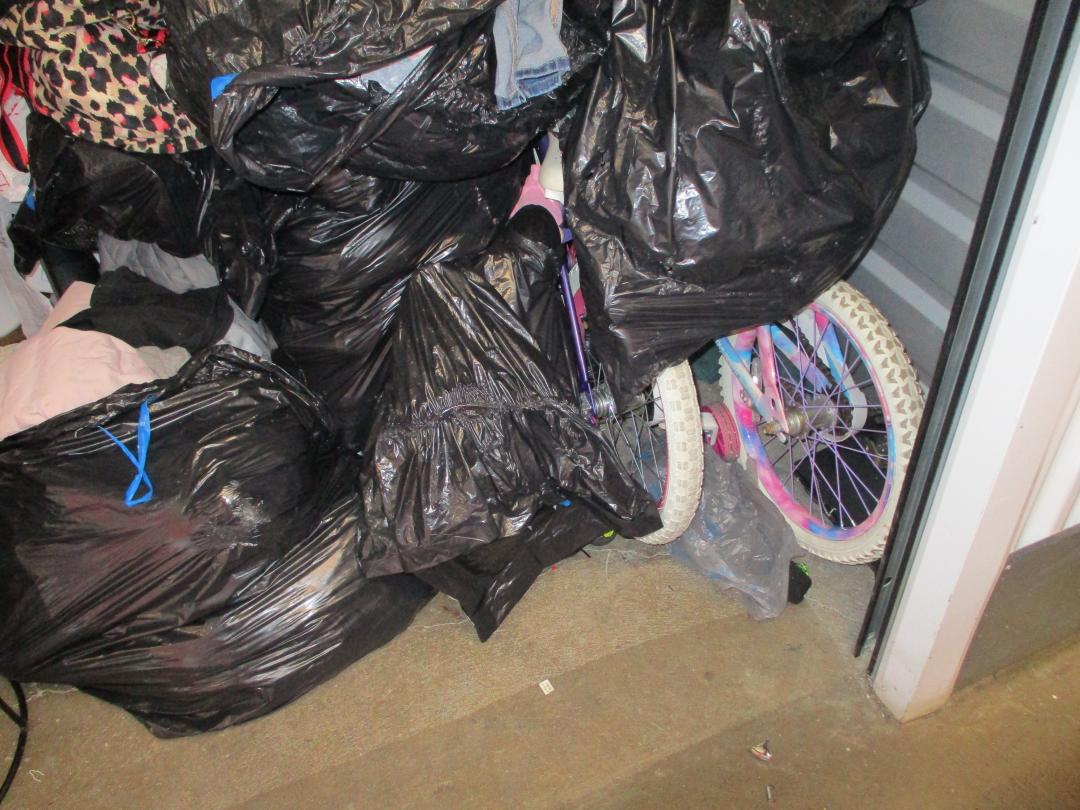 This unit appears to contain…furniture bags clothes boxes tv kid bikes