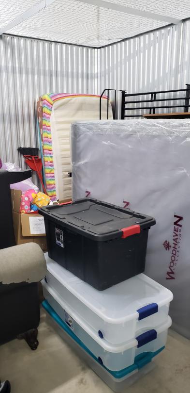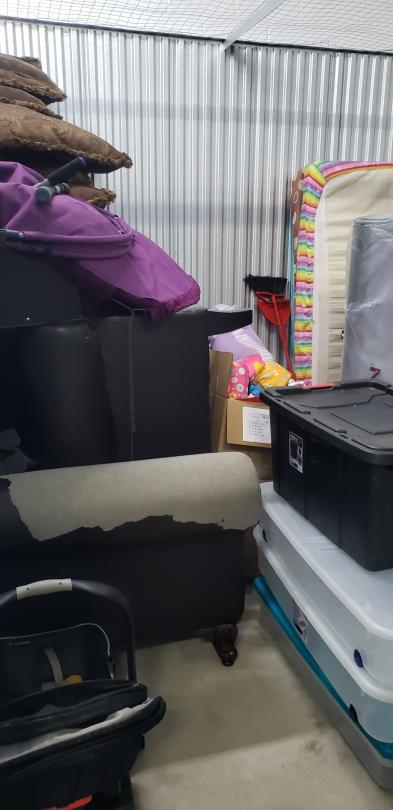 This unit appears to contain…Couches,Mattresses,Box Springs,Nightstands,Chairs,Misc. Boxes,Toys