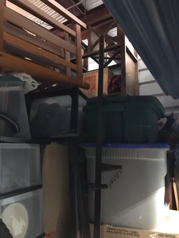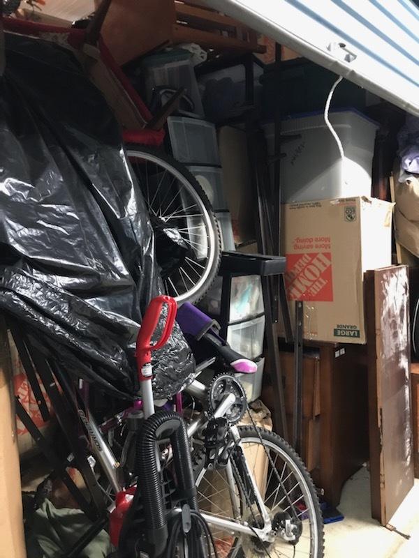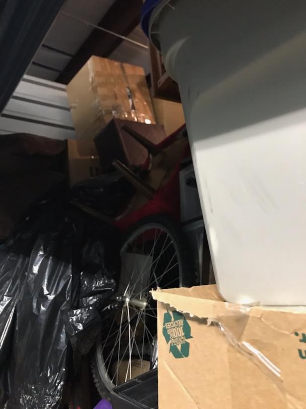 This unit appears to contain…Bikes,Tools,Filing Cabinets,Shelving,Bed Frame,Dressers or Armoire,Nightstands,Lamps,Chairs,Tables,Kitchenware,Decor,TV Stand,Plastic Bags,Plastic Containers,Misc. Boxes,Clothing,Suitcases,Laundry Baskets,Chests,Bookbags,Vehicles not included in Sale