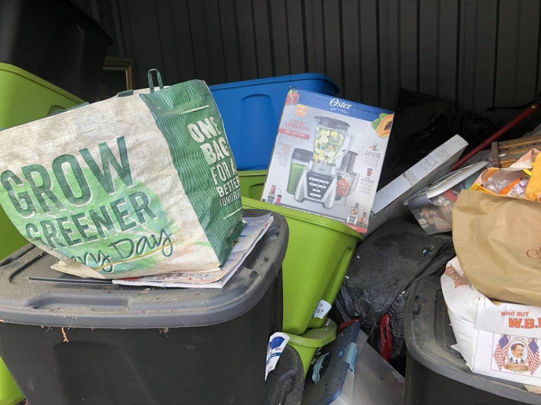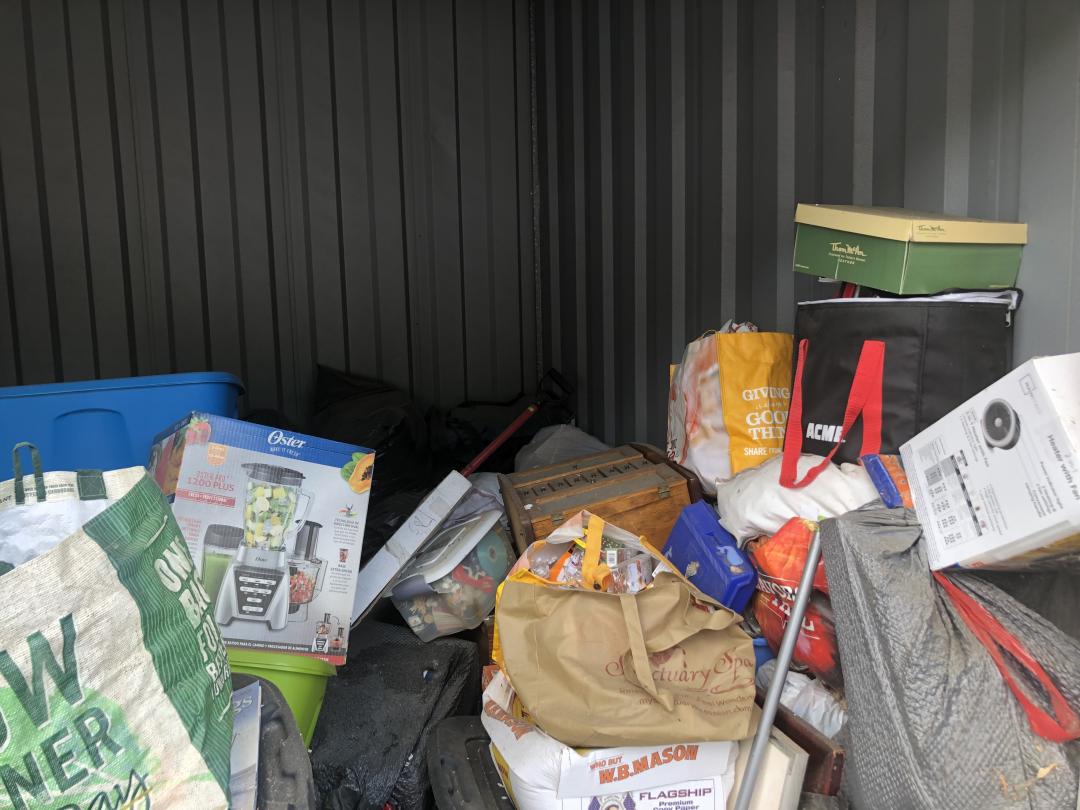 This unit appears to contain…Bags, Boxes, Clothing and Shoes, Totes, Pictures, Blender