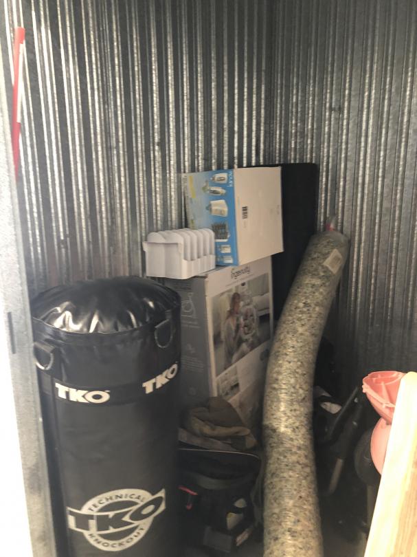 This unit appears to contain…Punching bag, Baby Furniture, Kids Battery Operated Riding Toys, Roll of Carpet or Padding