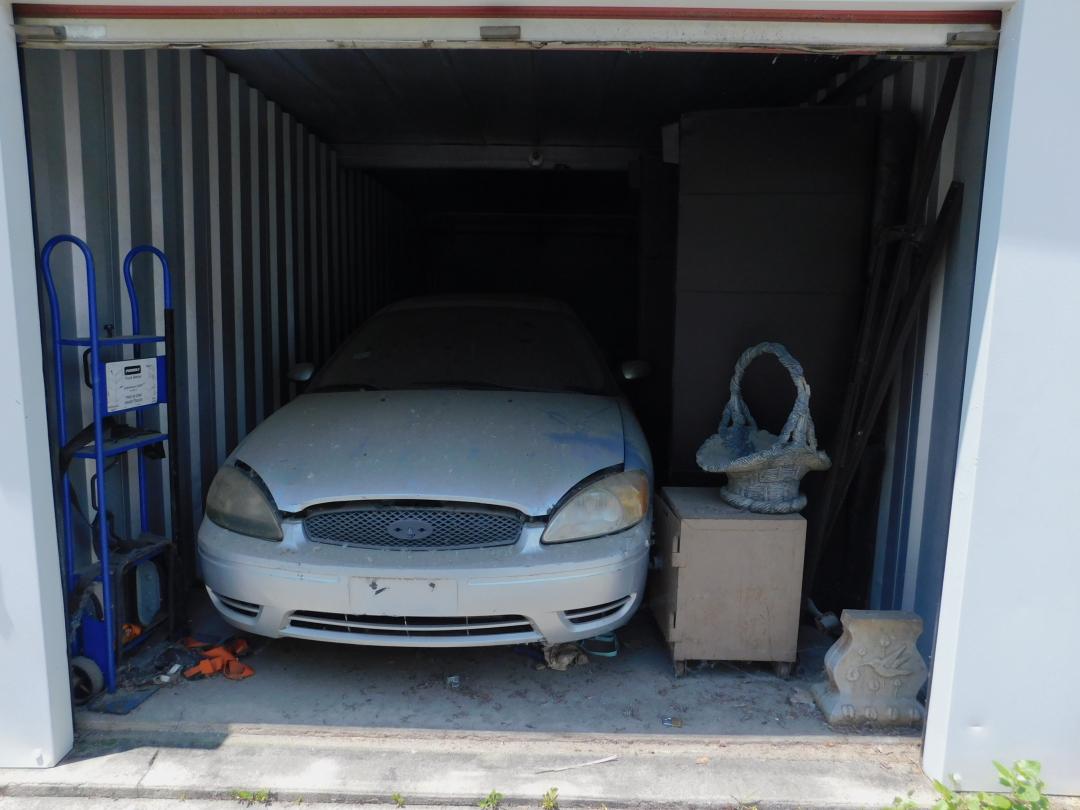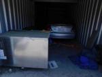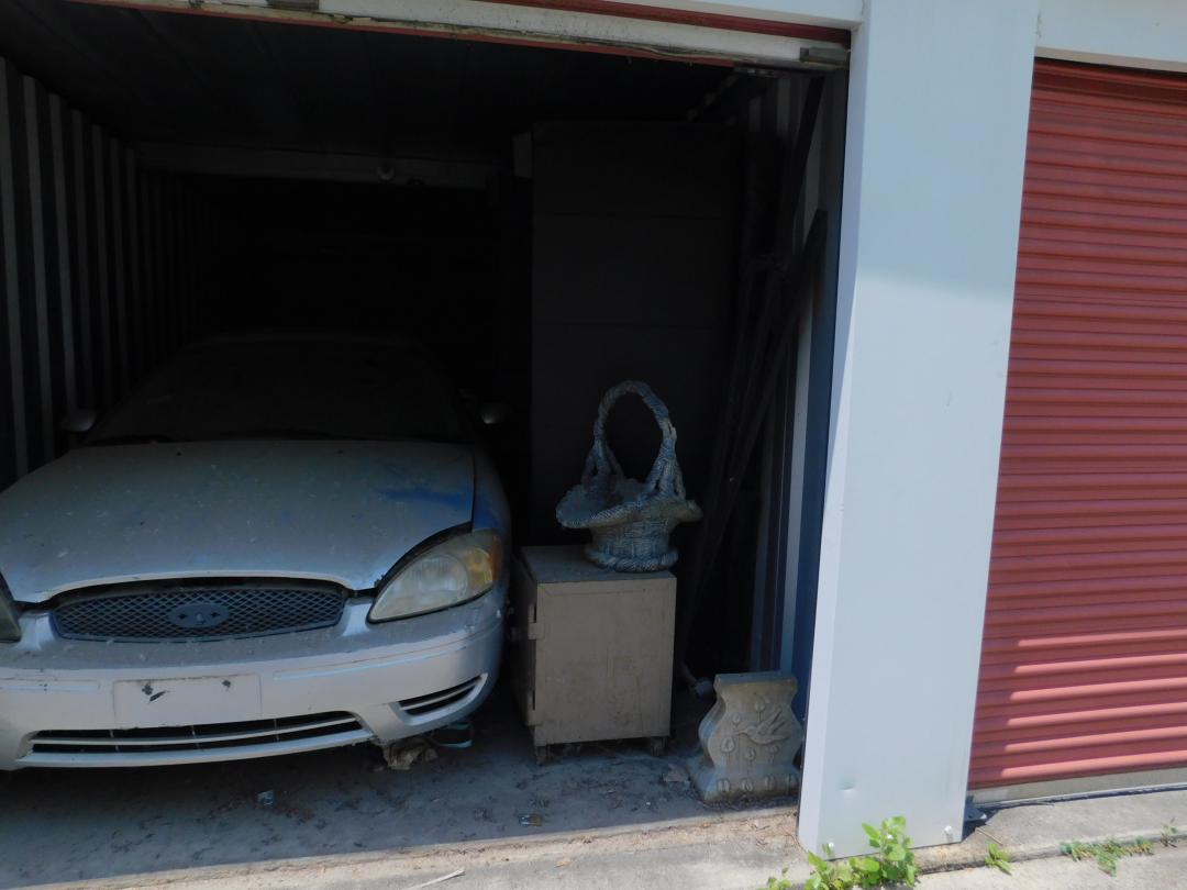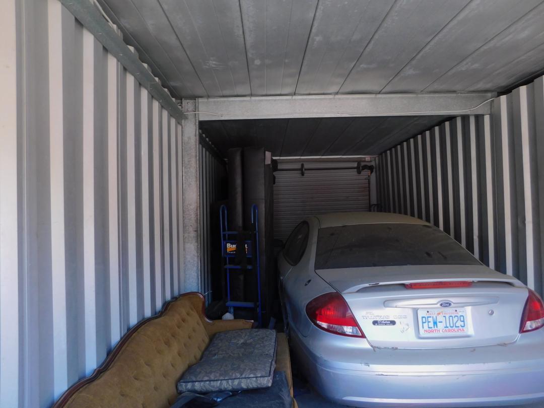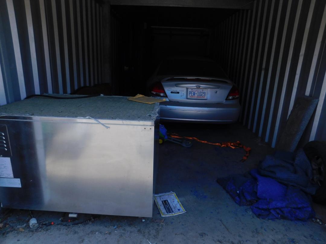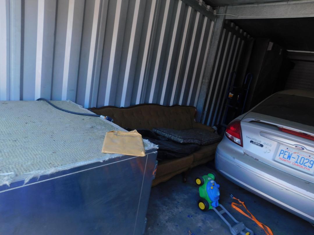 This unit appears to contain…CAR IS NOT FOR SALE.... couches, commercial oven, bed frame, 2 hand trucks, safe, outside concert yard statues,