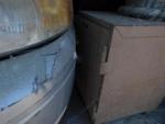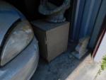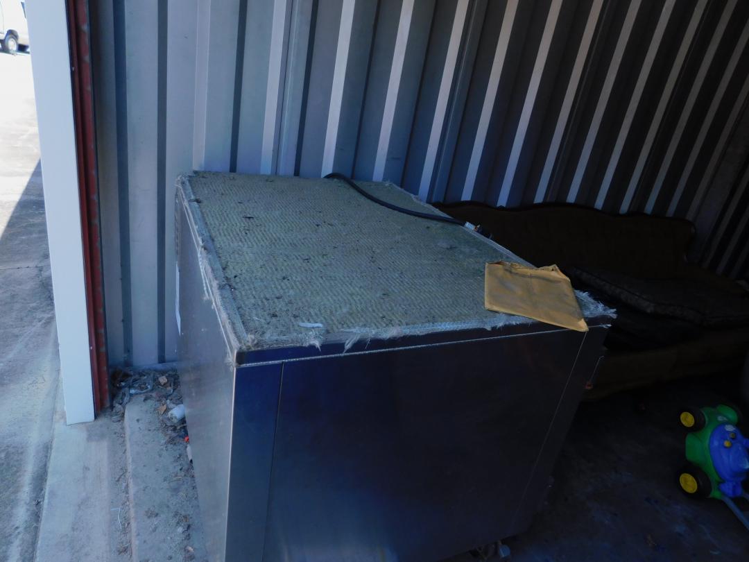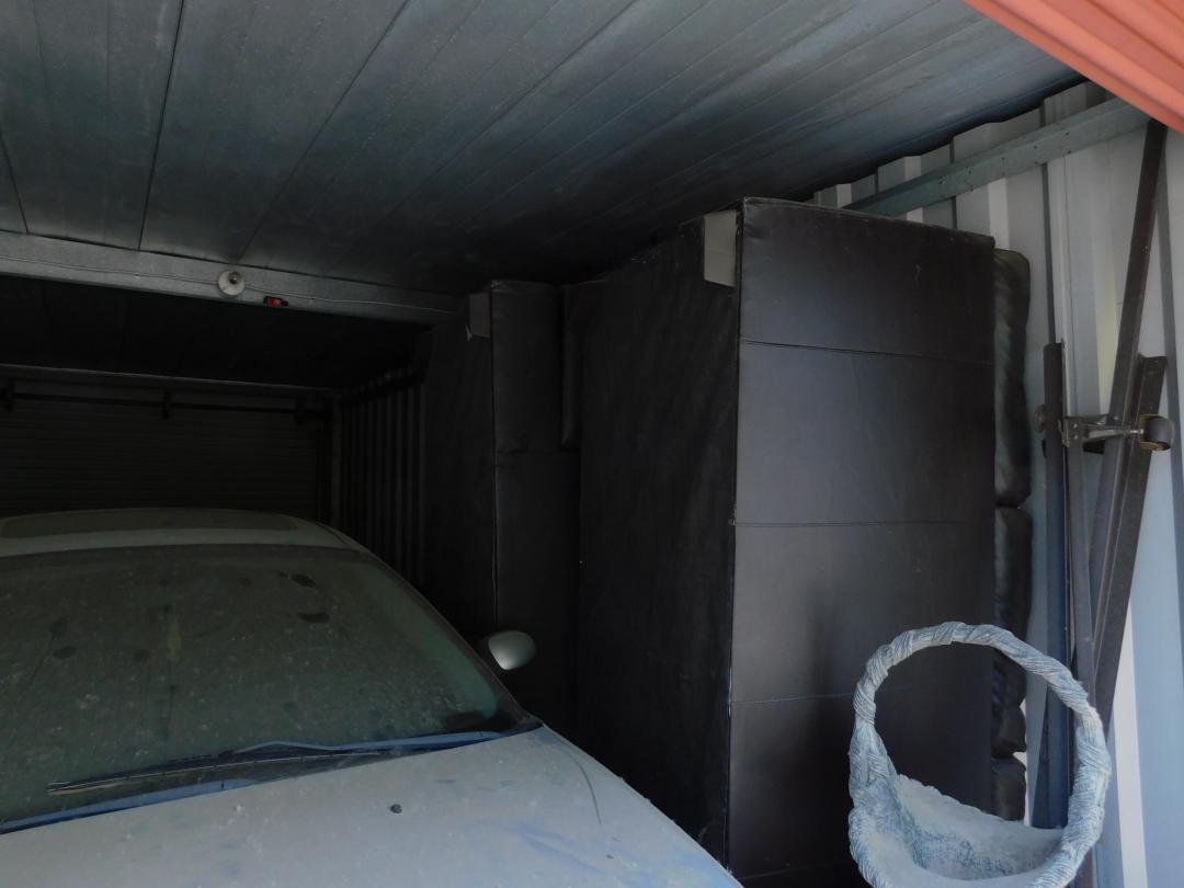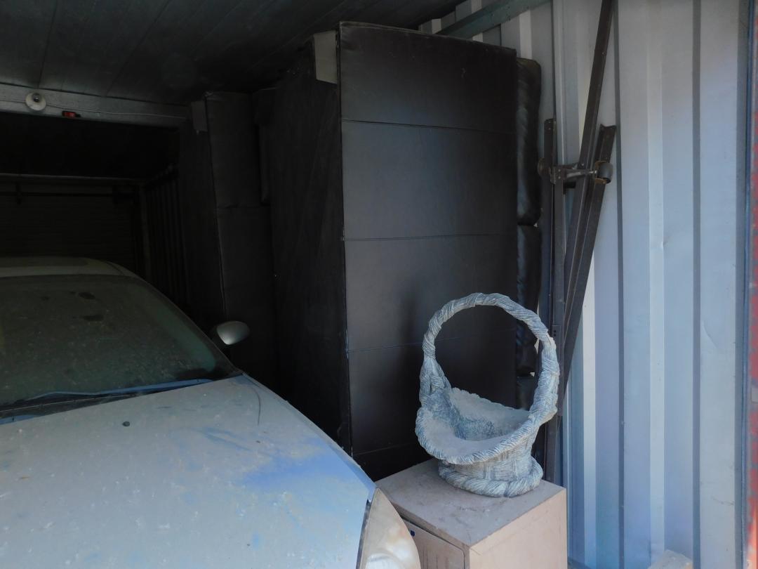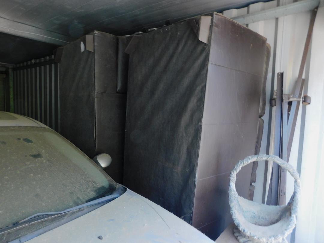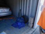 This unit appears to contain…CAR IS NOT FOR SALE.... couches, commercial oven, bed frame, 2 hand trucks, safe, outside concert yard statues,