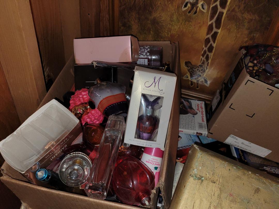 This unit appears to contain…boxes, dvds, movies, wall art, perfumes