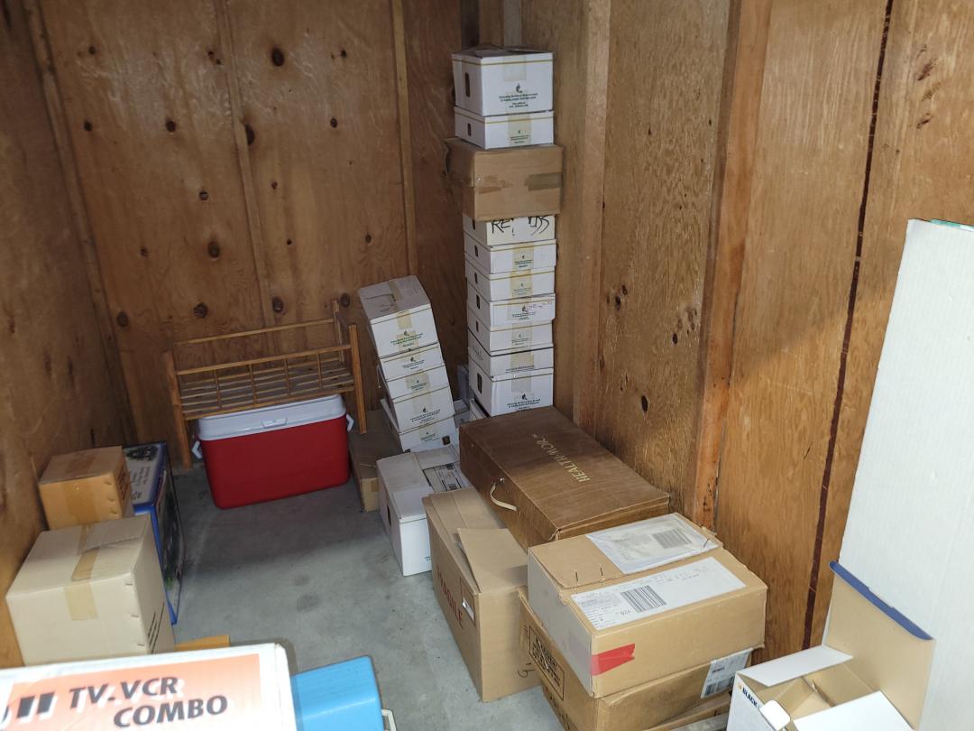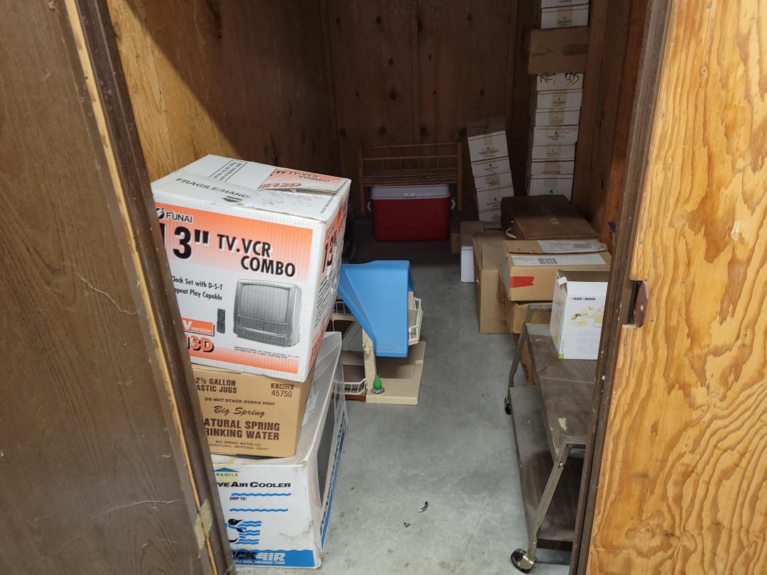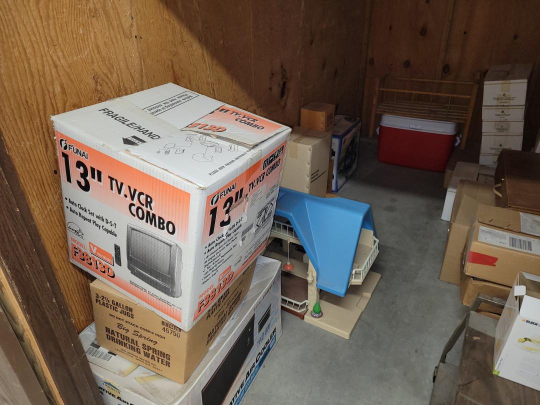 This unit appears to contain…boxes, cooler, doll house, rolling table