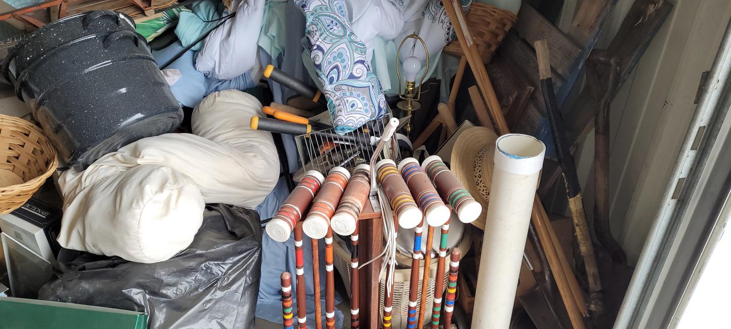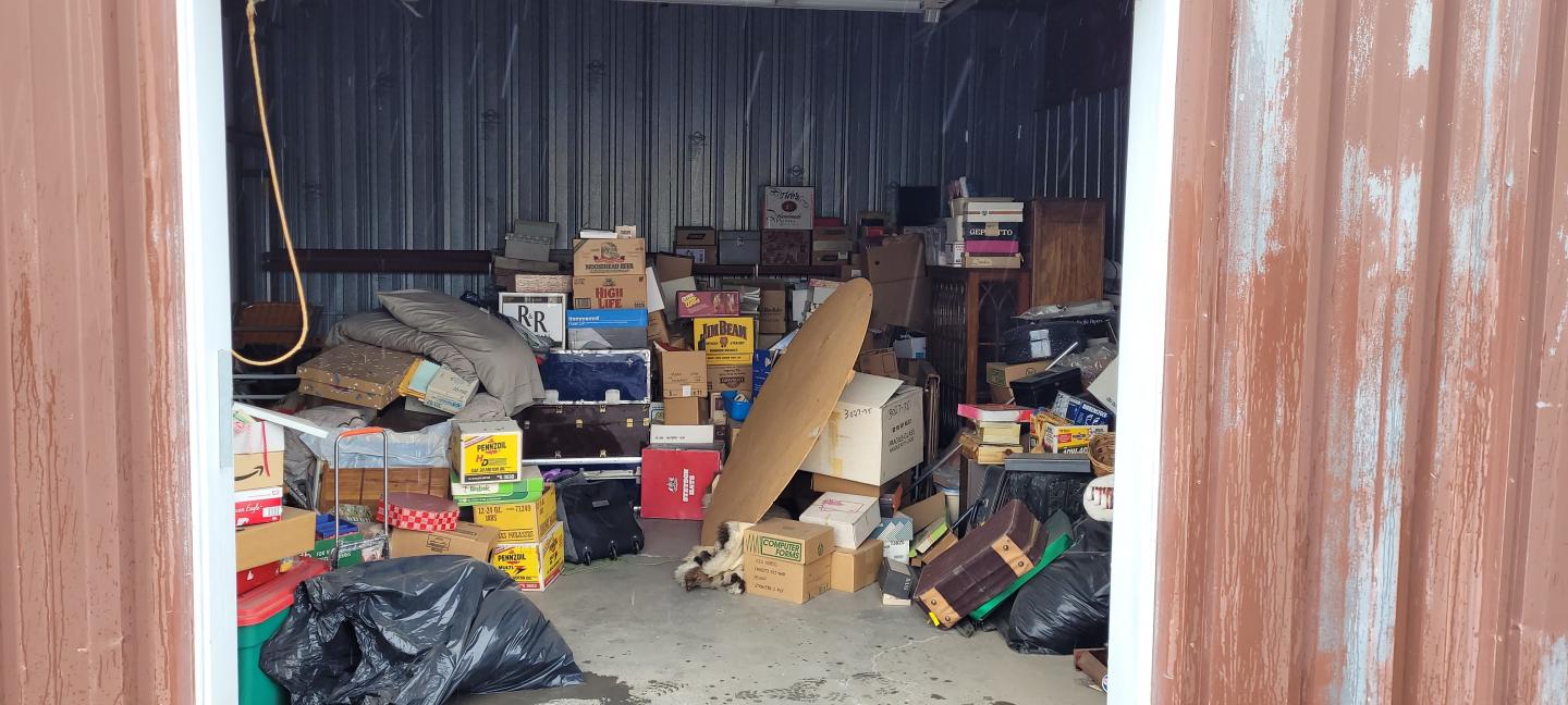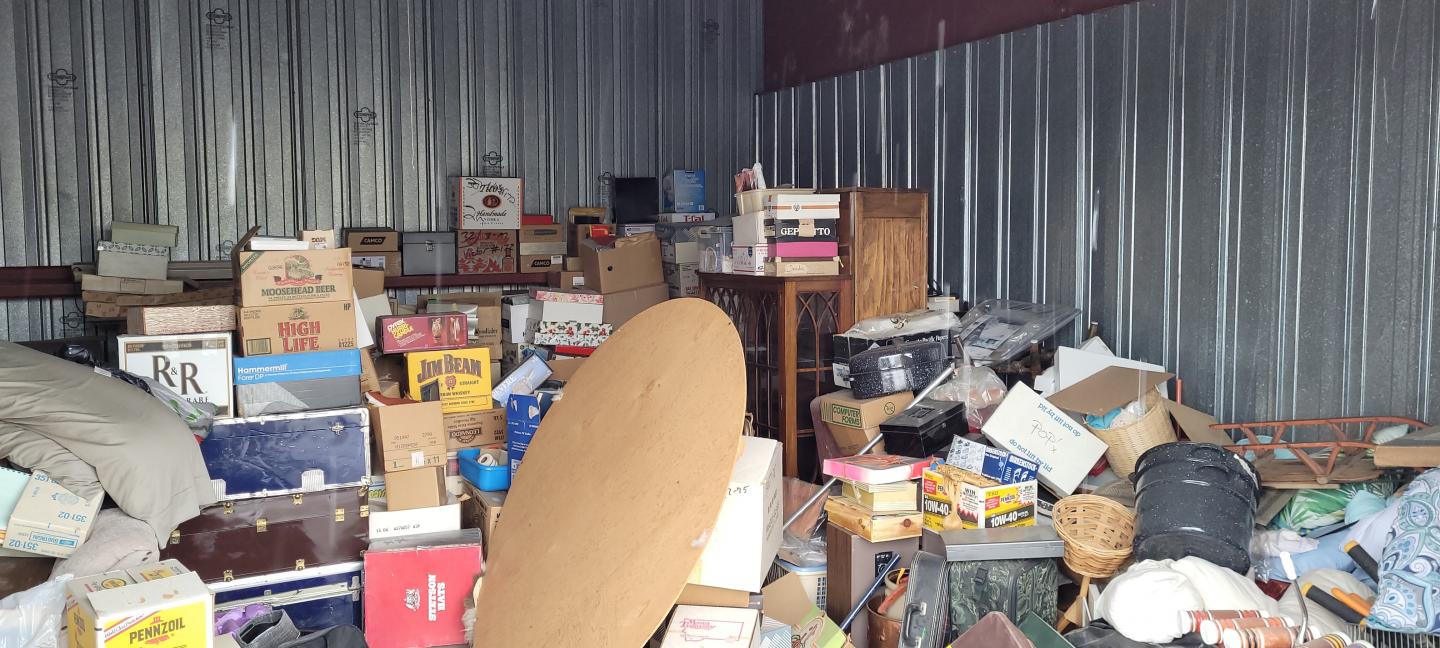 This unit appears to contain…boxes, furniture, animal fur/skin, rolling duffle, chests, croquet set, suitcases, speakers, large double broiler