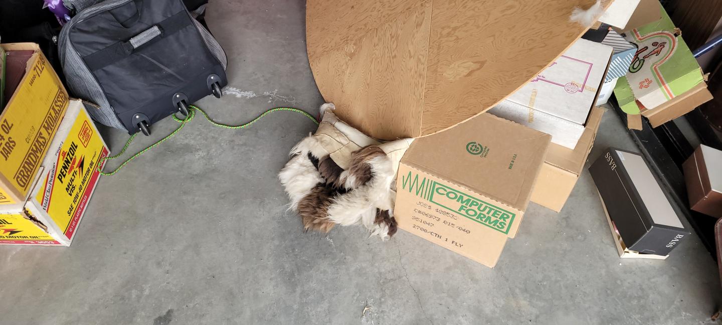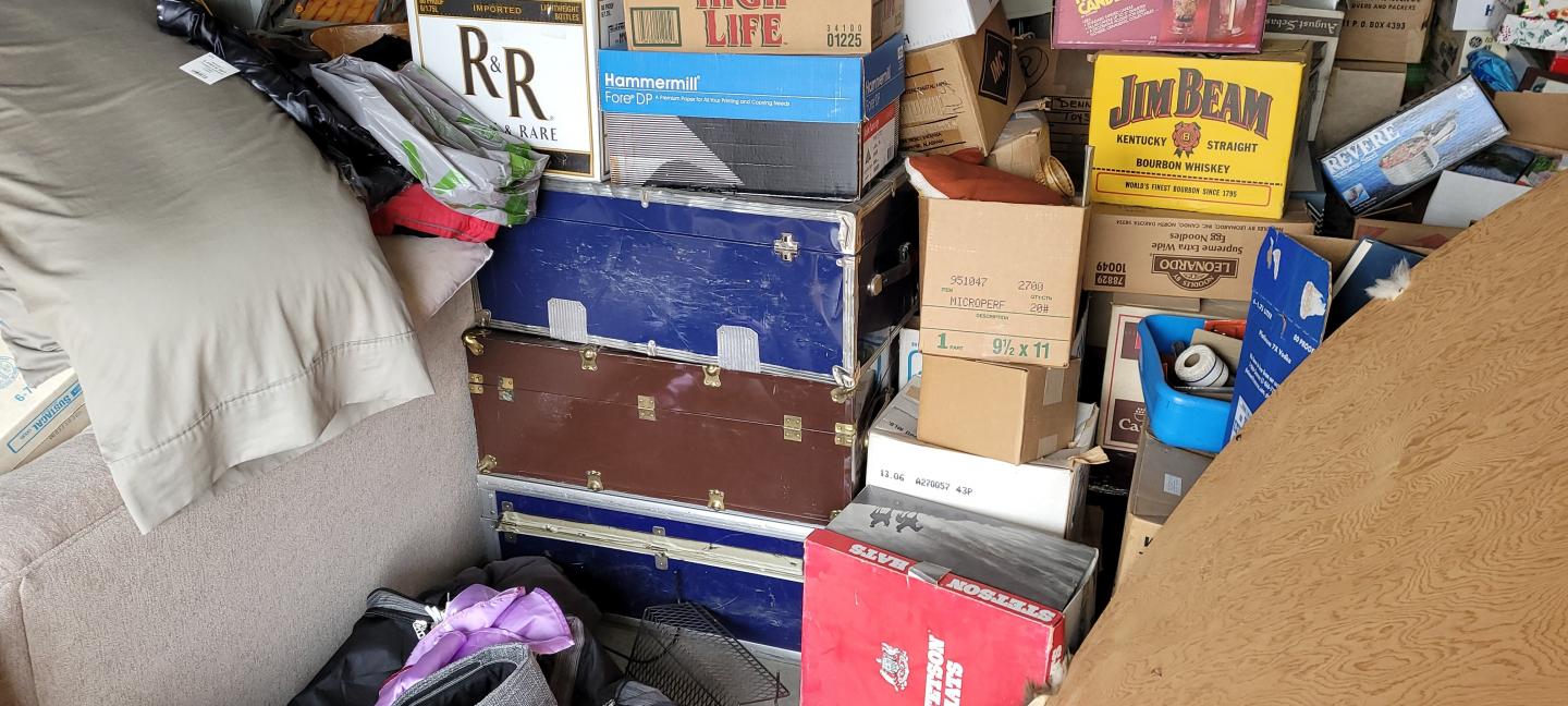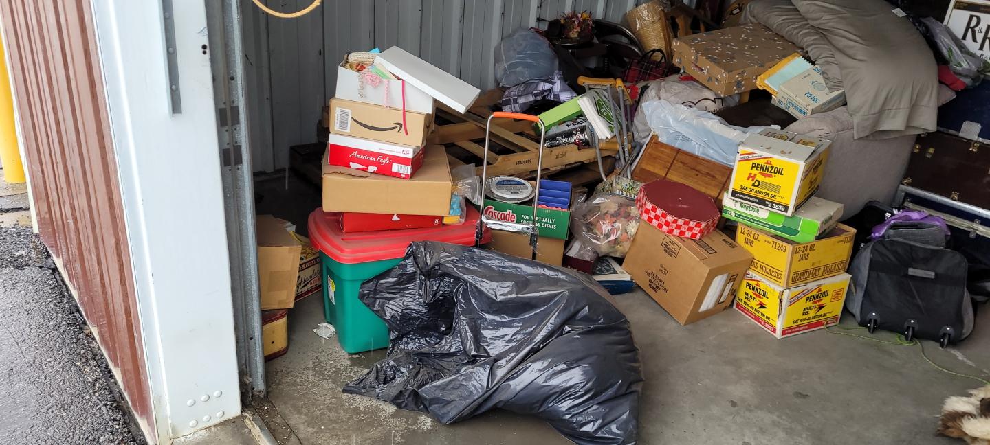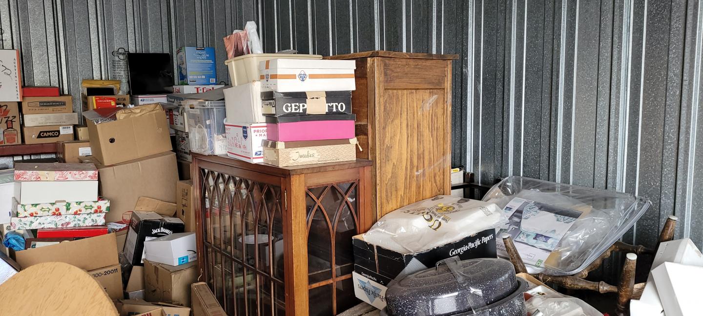This unit appears to contain…boxes, furniture, animal fur/skin, rolling duffle, chests, croquet set, suitcases, speakers, large double broiler