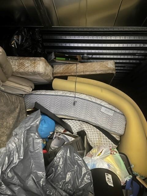This unit appears to contain…mattress, household items, furniture, crates,