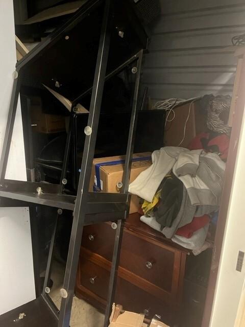 This unit appears to contain…TV, furniture, mattress, household items