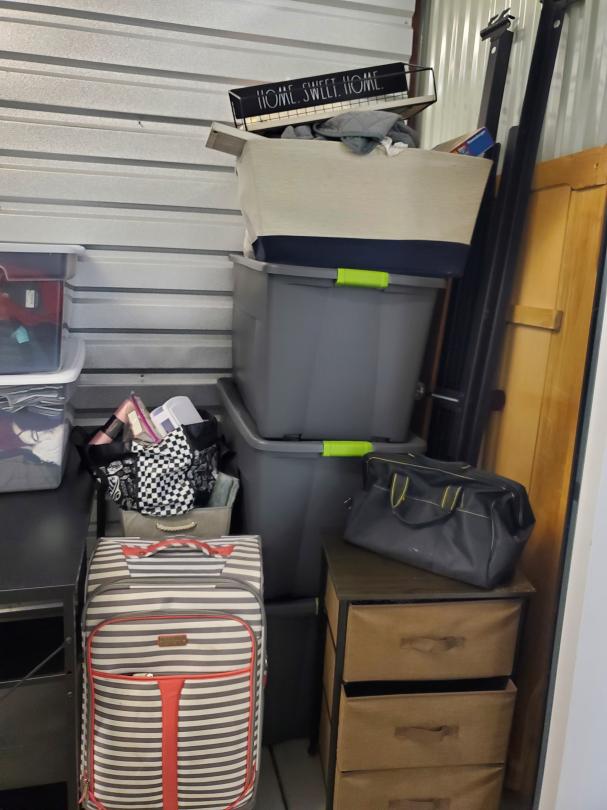 This unit appears to contain…This unit appears to contain luggage, table, bins, furniture, bed frame, sofa, art and all contents of unit.