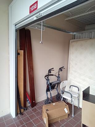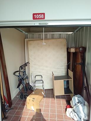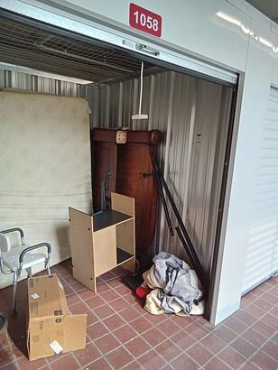 This unit appears to contain…8x10 unit - mattress, bed frame, dresser, misc end tables, walker, shower chair and misc clothing tag # - 6794197