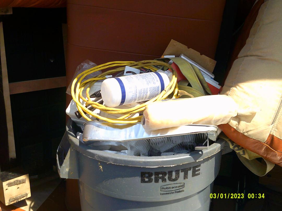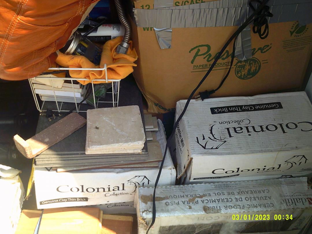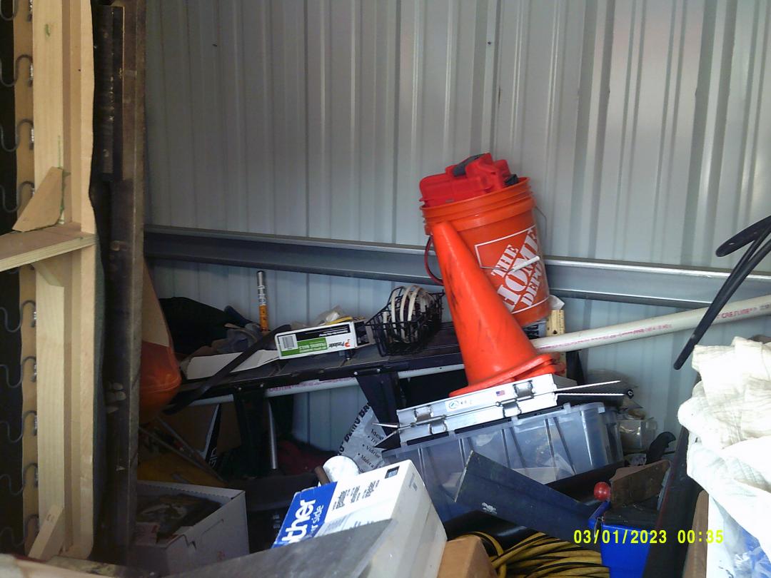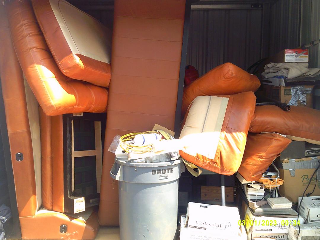 This unit appears to contain…READ ALL AUCTION RULES BEFORE BIDDING!!! Unit appears to contain: Couches, tile, painting supplies, Buckets, pipe, record player, bags