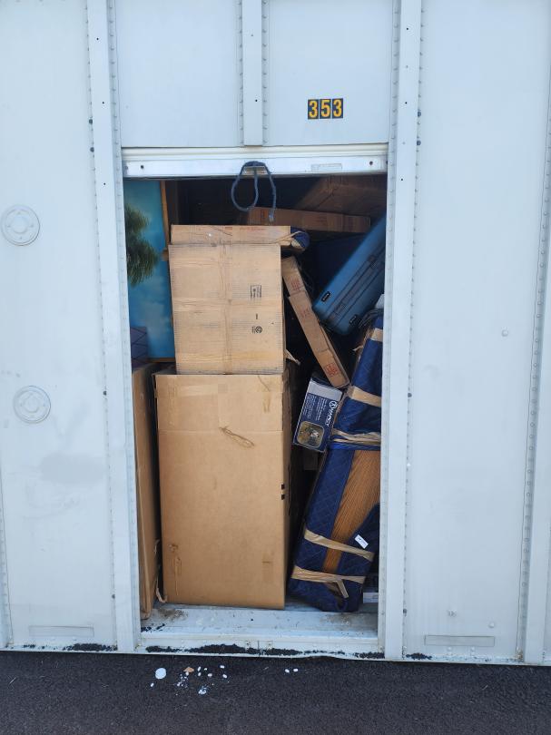 This unit appears to contain…Boxes, suitcases, bags, new goods, appliances, personal items, clothes, shoes, sports equipment