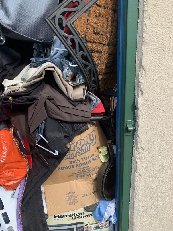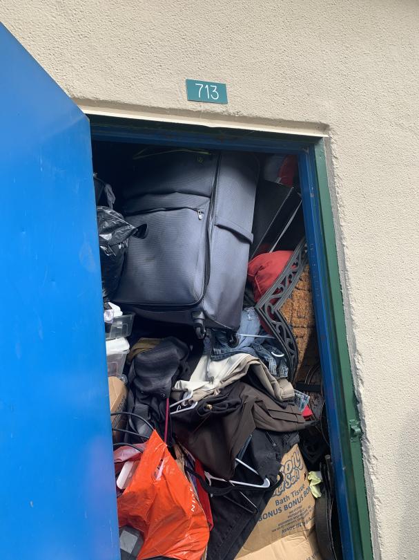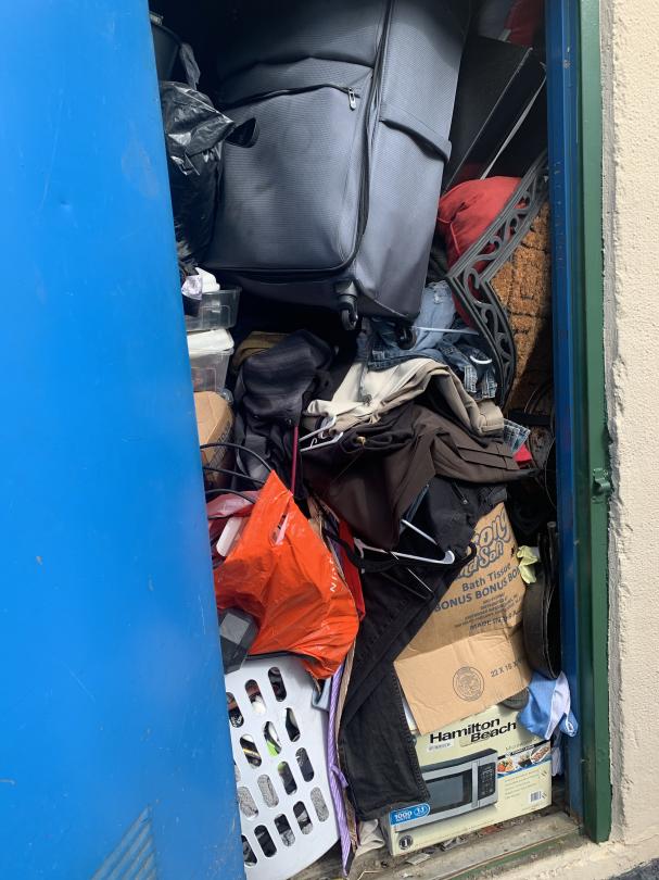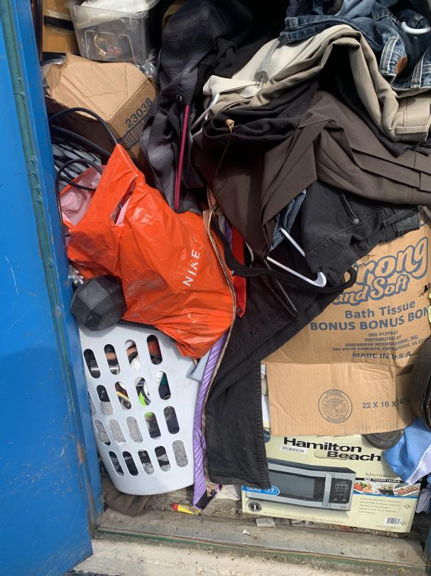 This unit appears to contain…BOXES, CLOTHES, LUGGAGE, RUGS, POTS AND PANS