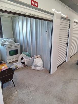 This unit appears to contain…5x10 unit - stove, bags of clothing, mirror, tire, and wood stand tag # - 6794174