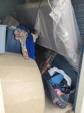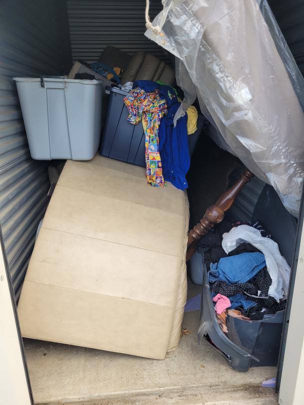 This unit appears to contain…Couches,Box Springs,Bed Frame,Plastic Containers,Clothing,Laundry Baskets