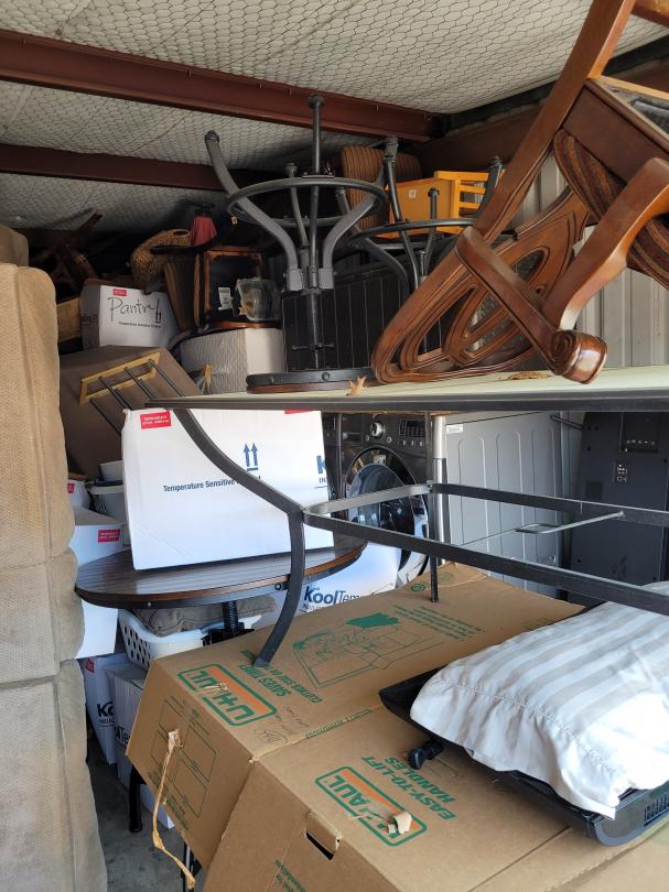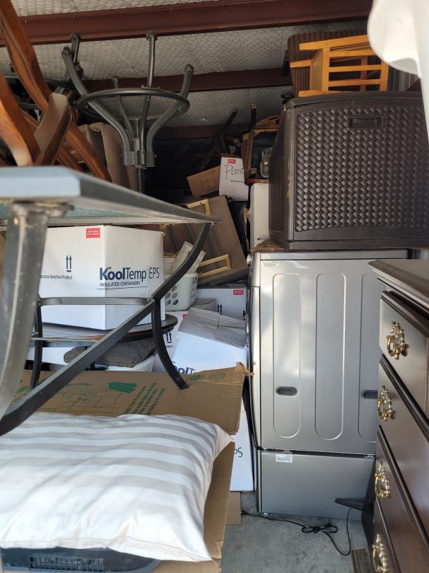 This unit appears to contain…Washing Machine,Dryer,TV,Couches,Lamps,Chairs,Patio Furniture,Laundry Baskets