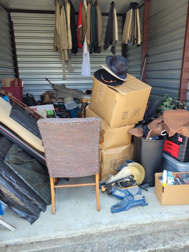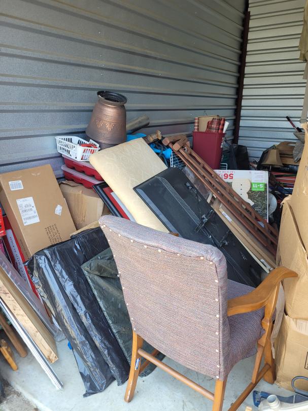 This unit appears to contain…Tool Box,Tools,TV,Bed Frame,Chairs,Decor,Plastic Containers,Misc. Boxes,Clothing,Sports Gear,Artwork