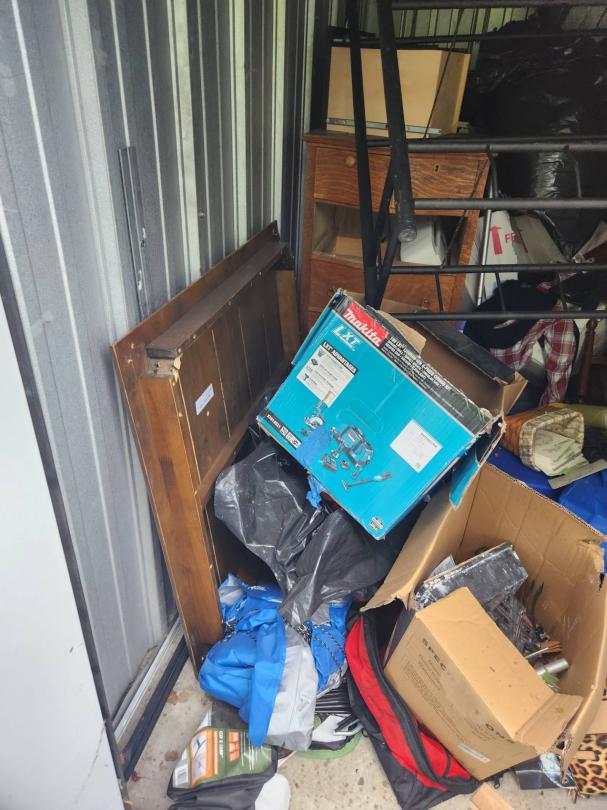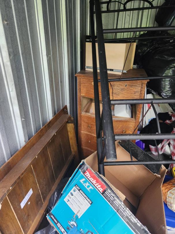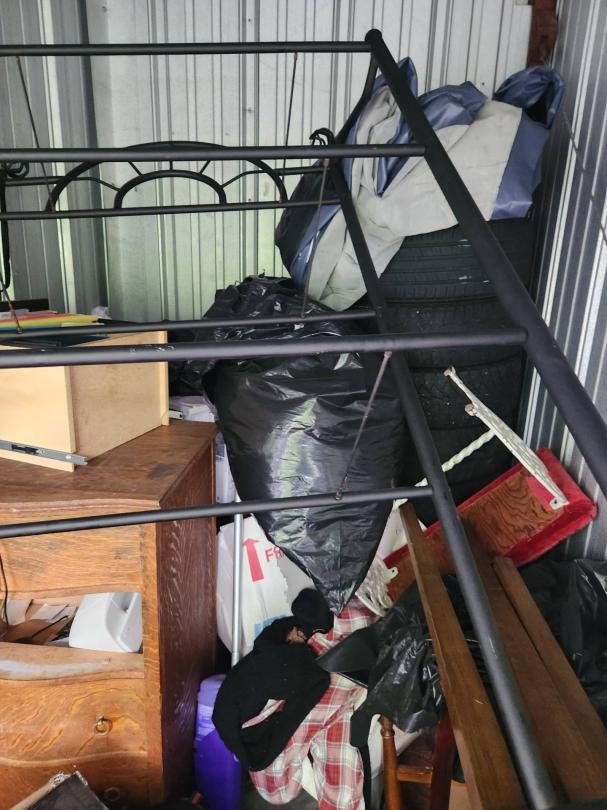 This unit appears to contain…(5x10) - drive up unit Tires Dresser Shelving Miscellaneous items