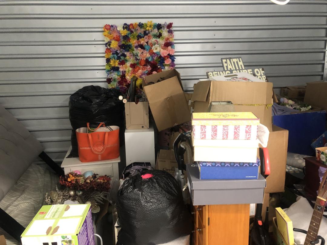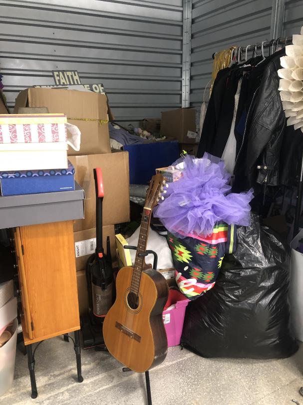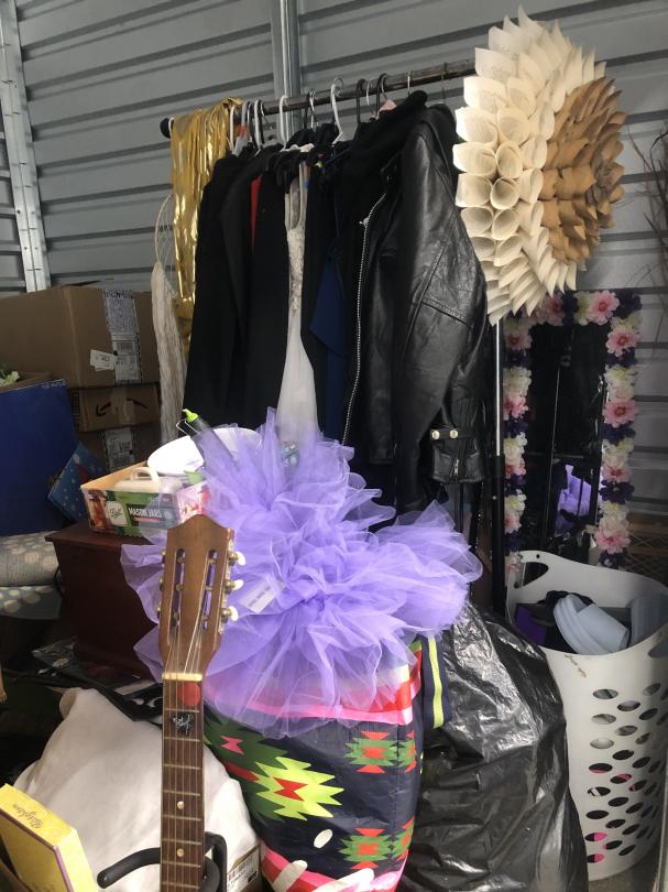 This unit appears to contain…Clothing Clothing Rack Guitar Guitar Stand Furniture Bedding Mattress Headboard Ladder Shelving Bags Bins Boxes Artwork Pictures Totes Laundry Baskets Vacuum Holiday Decorations Home Decorations