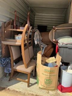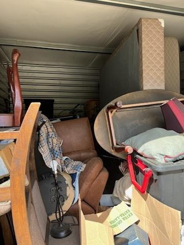 This unit appears to contain…Couches,Chairs,Tables,Plastic Containers,Misc. Boxes,Misc. Items