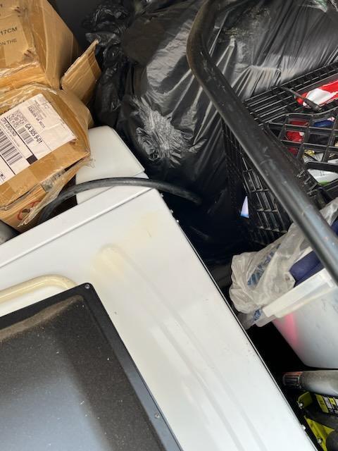This unit appears to contain…Washing Machine,Plastic Bags,Misc. Boxes,Misc. Items