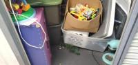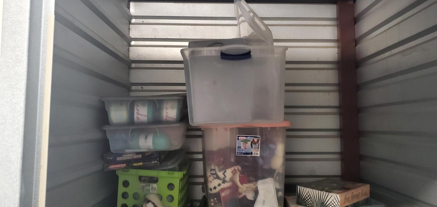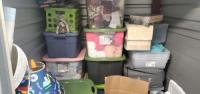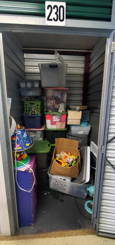 This unit appears to contain…Totes, Kitchenaid Mixer, Children's Items, Yarn (lots), Craft Supplies, Lamp. Seal #1183595 REFUNDABLE CLEANING FEE: $100.00 - SEE MANAGER FOR DETAILS