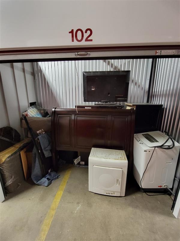 This unit appears to contain…Bed, TV, appliances, various other houseold items